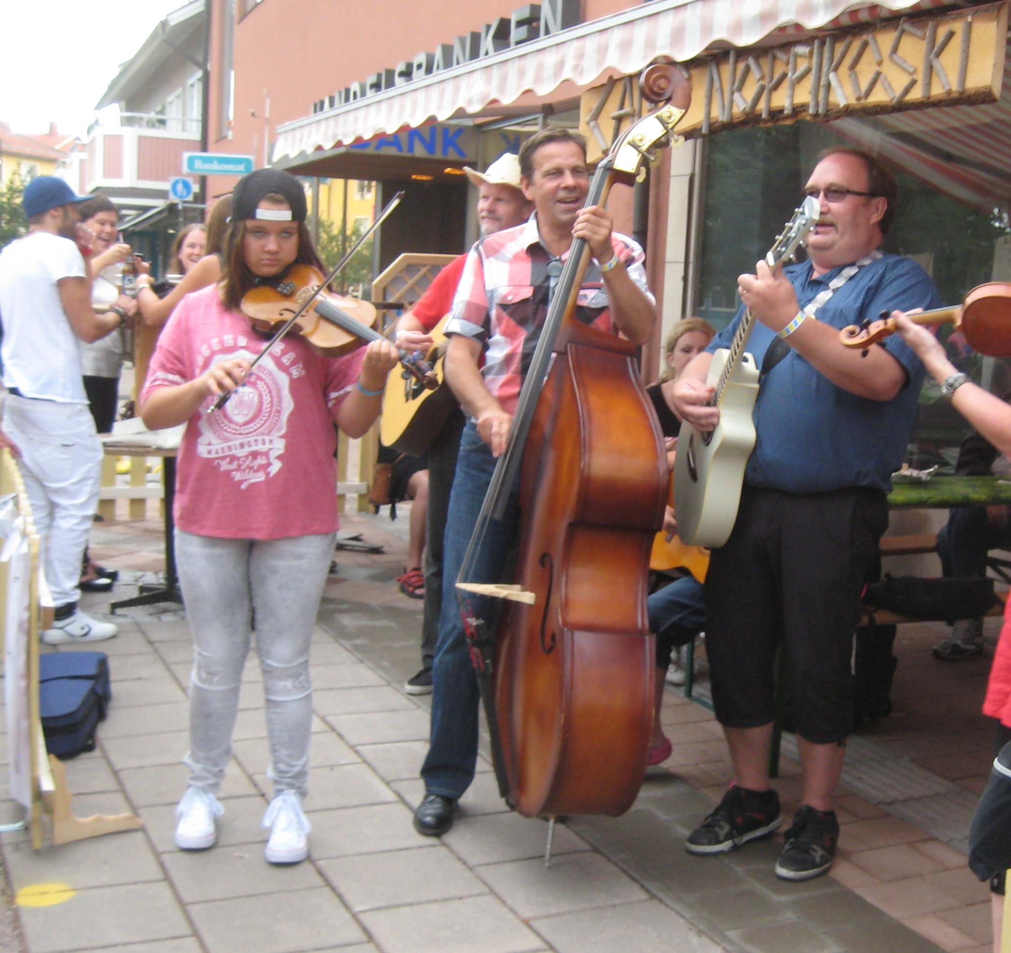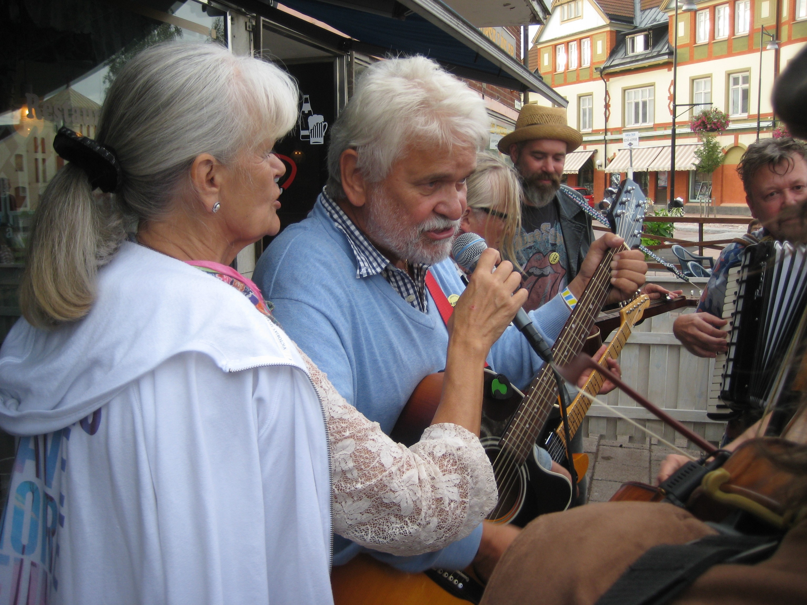 När man gick runt fick man en känsla av att befinna sig utomlands, var väl den trevliga, öppna och glada stämningen. Mat och dricka serverades i restauranger, parker och på gatorna. Här har vi en icke obekant musiker.