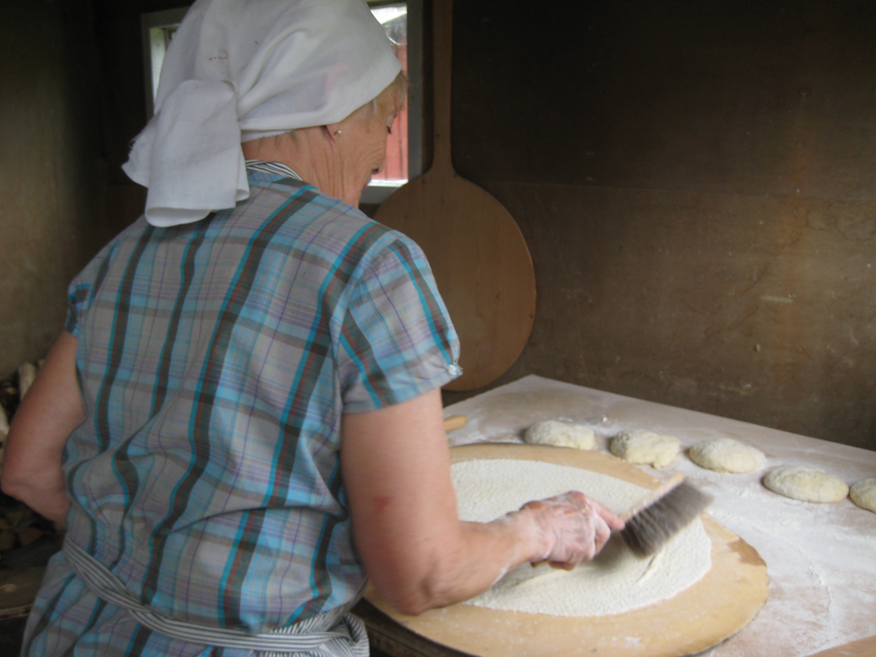 083.JPG1 Här ligger degbitarna på rad, kan säga att det är bra mycket tunnbröd som bakas denna dag. När älgjakten är slut för veckan får alla jägarna varsitt paket nybakt tunnbröd. Som lön för god jakt eller för tröst för dåligt byte, valfritt. 085.JPG1 När kakorna är utkavlade, tunt som bara den undrar jag hur hon får på den på brödspaden. Ser väldigt enkelt ut men jag avstod från att prova. 079.JPG1 Så här ser det ut nygräddat, riktigt färskt med smör på är en delikatess kan jag lova. Får man sedan några skivor Lapplands blå till är det en gourmerätt för sig. Den här ugnen är perfekt för stenugnsbakad pizza om man känner för det. Det måste vara underbart att ha tillgång till en sådan här bagarstuga på sin tomt dels för det goda brödet men framför allt få känna lite av tiden från svunna dar.