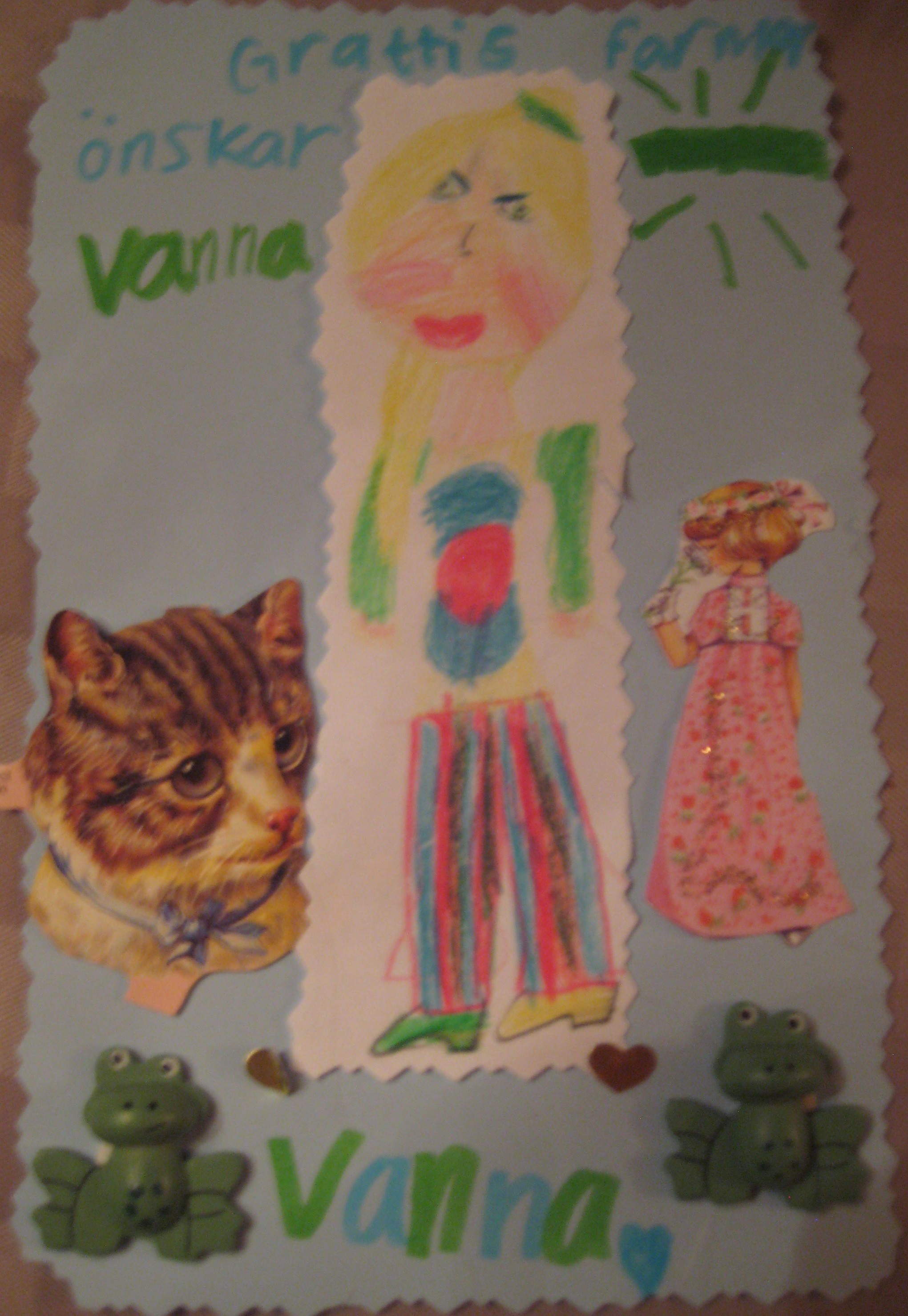 Ett kort egenhändigt komponerat och tillverkat av ett litet barnbarn, en dyrbarhet som uppskattades mycket och som inte kan fås för pengar.
