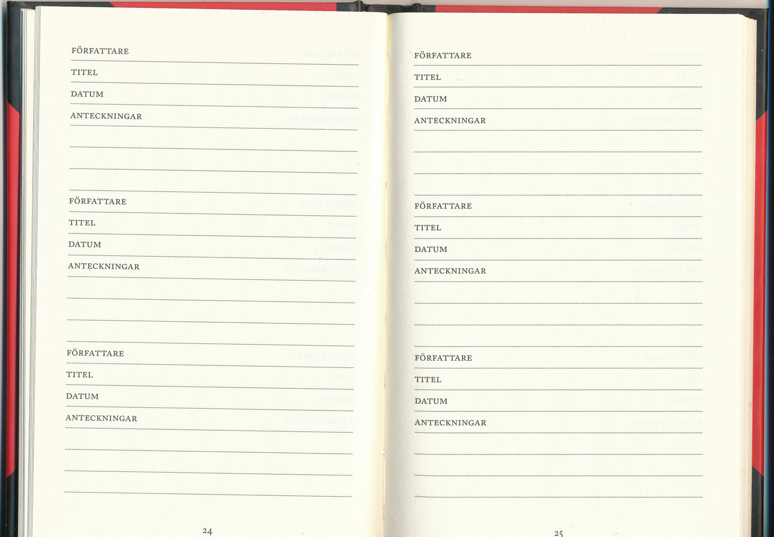 Alla pocketböcker jag har på svenska skickar jag till min syster i USA och för att minnas vilka de var skriver jag upp det på en lista i datorn. Dessvärre glömmer jag det ibland och risken är att jag köper dubbletter. Nu fick jag en läsdagbok av en väninna, perfekt hade ingen aning om att de fanns.