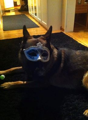 Igår var det Halloweenfirande lite runt om och det fanns en massa oknytt runt om på vägarna. Sonen visade detta foto på sin hund Gaston som även han var med ute på Trick or Treat.