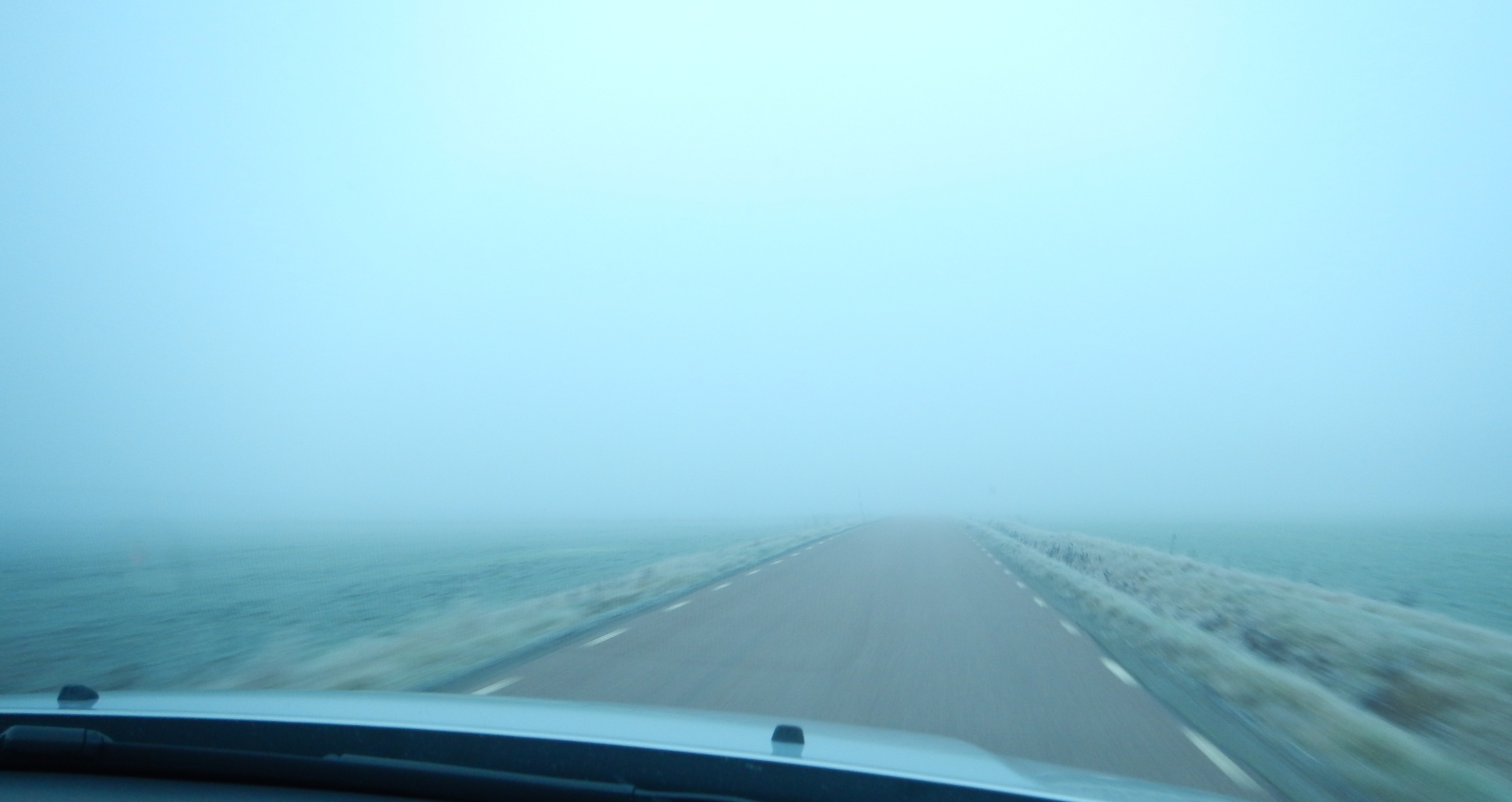 Efter morgonkaffet körde Rolf ut bilen samt eskorterade mig till tandläkaren, det är en timmes körning på lite småvägar. Det var inte ”Dimmornas bro” men väl en dimmornas väg.