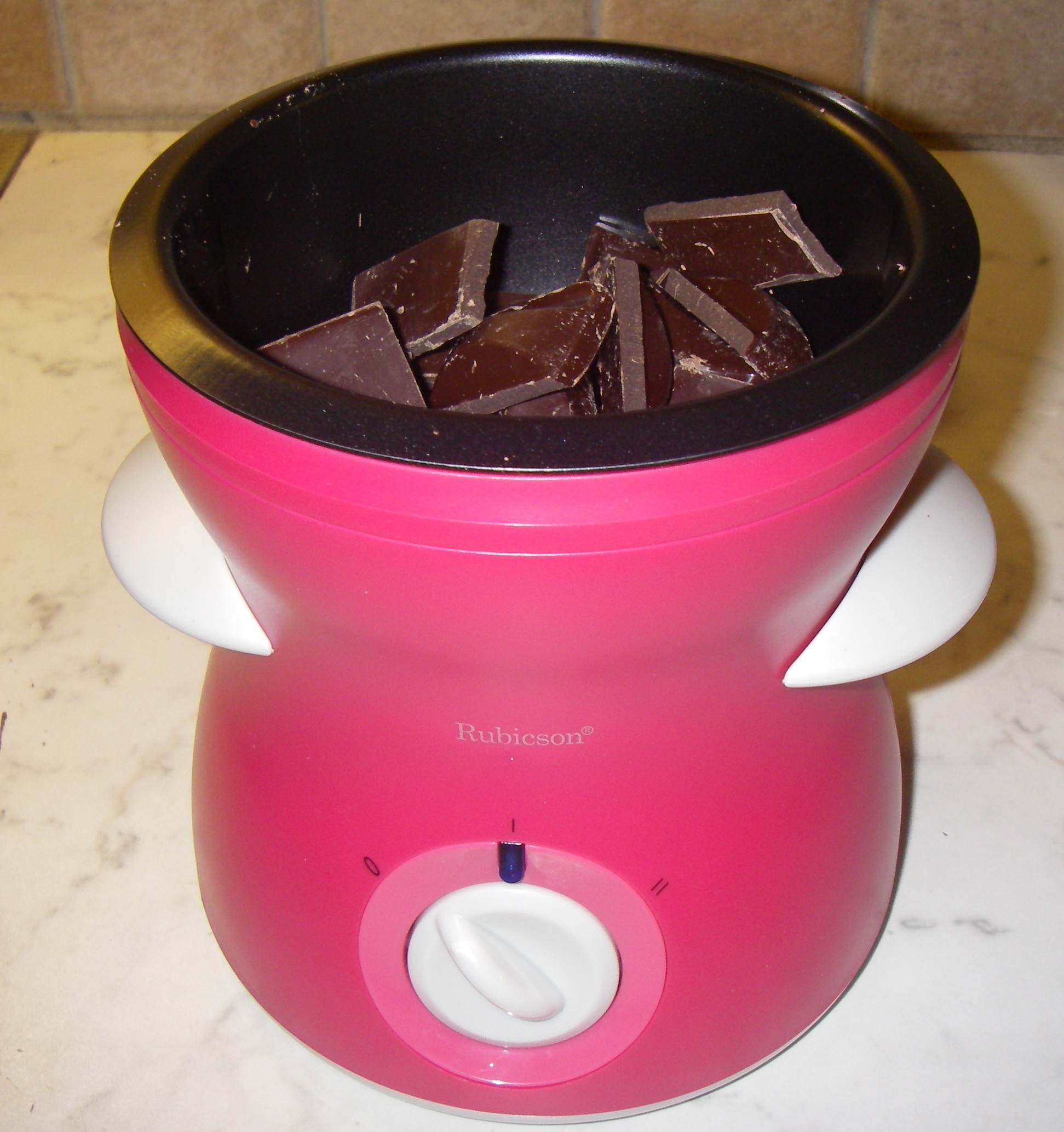 Inköpt på Kjell & Company, en trevlig liten sak och lätt att göra ren. Det fina är att när chokladen är smält ställer man den på läge 1, då håller det sig flytande resten av tiden. Kan naturligtvis användas till annat, doppa färsk frukt i choklad, julgodiset, bara att använda fantasin.