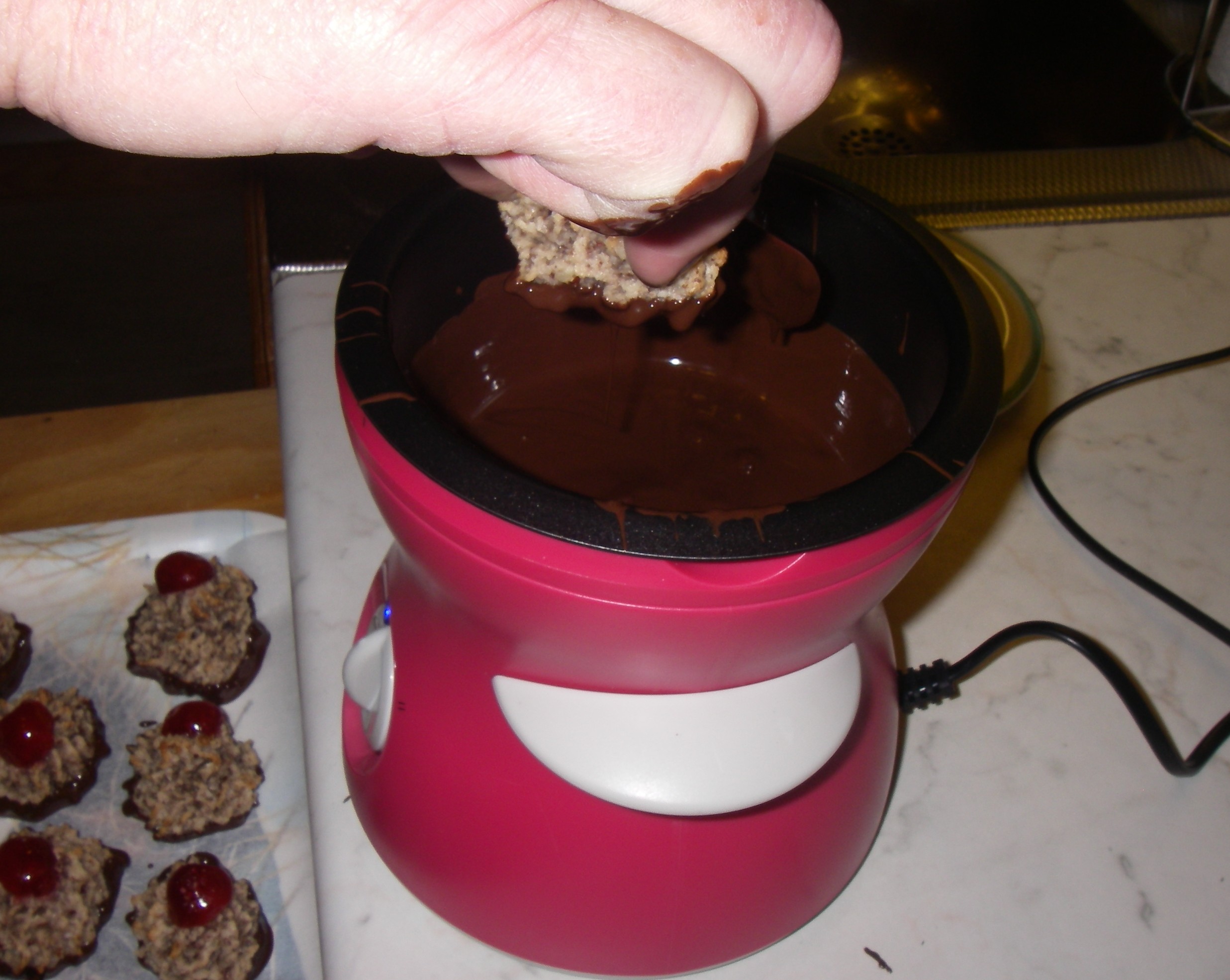 Men i år har Rolf fått ett hjälpmedel (det är han som doppar kakorna i choklad) nämligen en chokladsmältare.