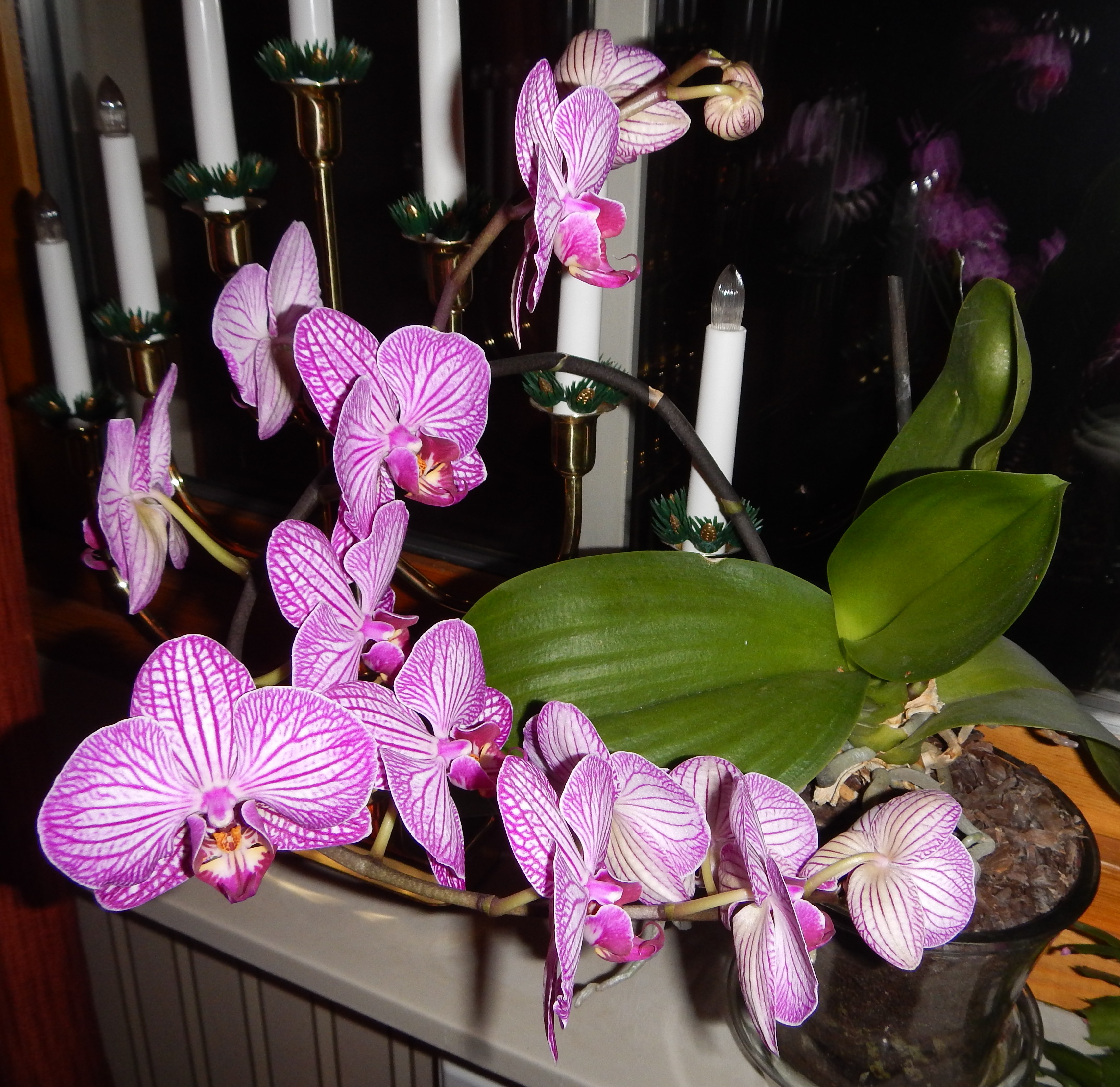 Ser helt naturtroget ut och det bästa är att det har timer. Nu lyser det i hallen fem timmar varje kväll och jag behöver inte oroa mig för att det skall ta eld. Batterierna räcker från nu och över hela julhelgen. Ser ganska trevligt ut. En lite sväng på ICA och vad fick jag se i deras lilla kondishörna? Lussesemla, en saffranslussekatt med mandelmassa och grädde, tycker det är lite som Skvadern (ni vet hälften tjäder hälften hare, finns ju uppstoppad i Sundsvall för de som vill ha bevis för dess äkthet).Tog dock inget kort på denna läckerhet. Vill bara säga att jag inte heller åt någon. Förutom några julklappar var denna shoppingdag slut och nu är jag hemma och njuter av en väldigt vacker Orkidé.