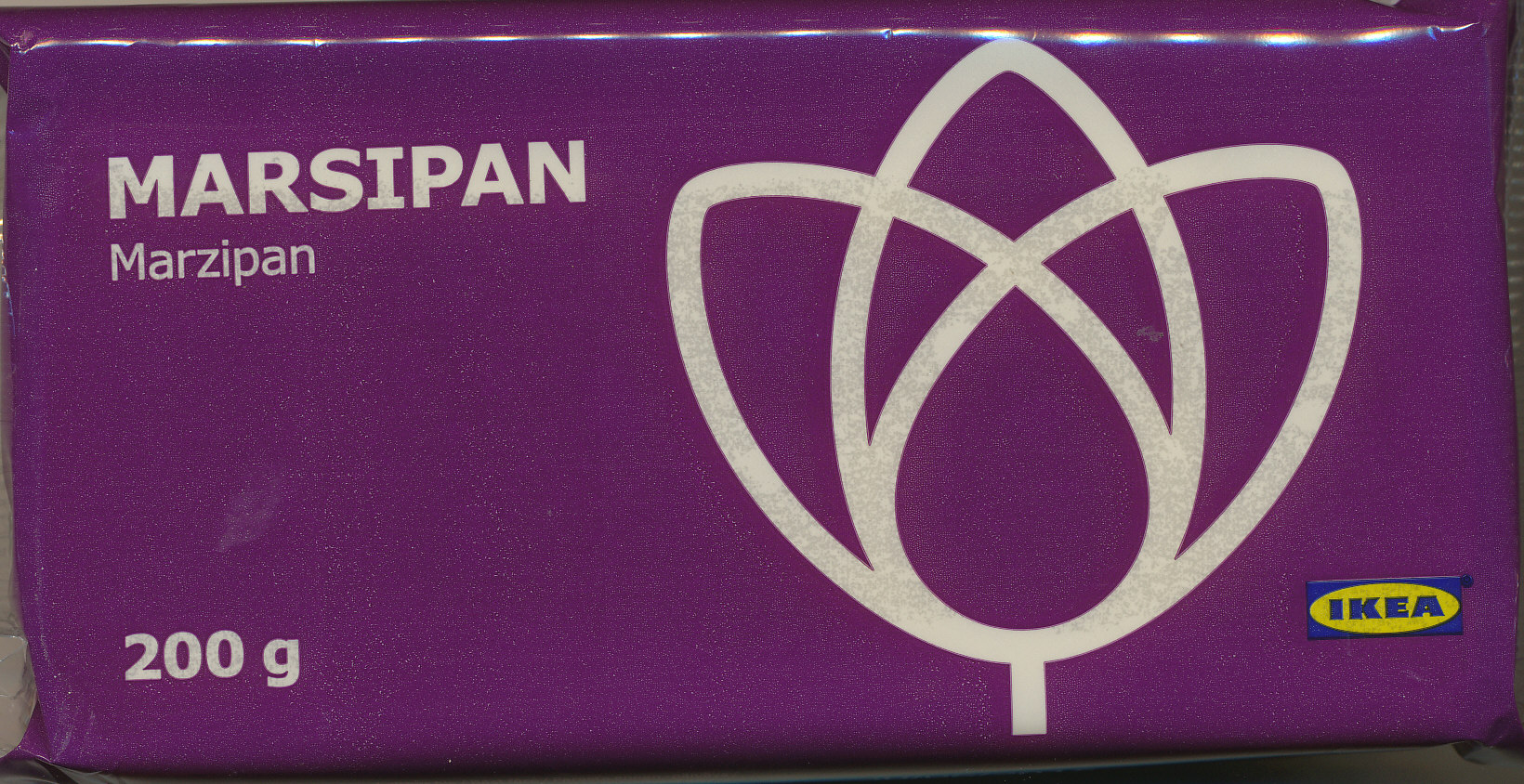 Lite shopping idag med betoning på lite. Köpte ett par julklappar men de kan jag inte visa, finns alltid en risk att barnbarnen kollar bloggen så här före jul. En titt in på IKEA för att kolla om det kommit in något nytt, det hade det dock inget i möbelväg utan mer lämpat inför julen. Marsipan i 200 grams paket.