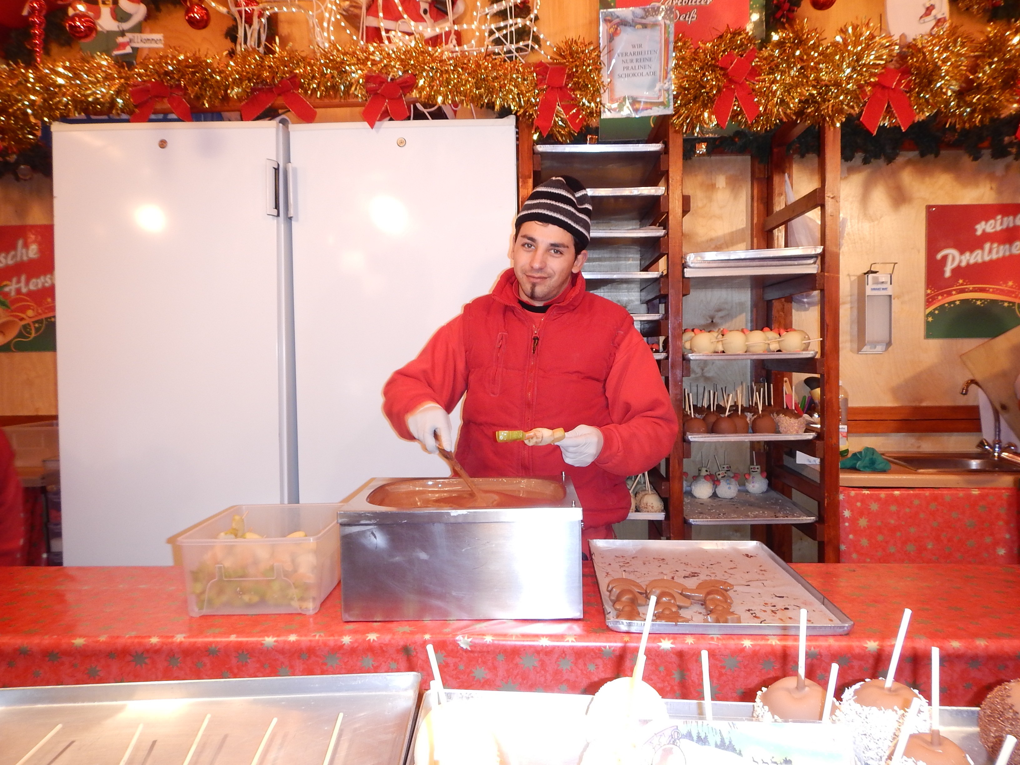 Här är en av försäljarna som när jag tog kortet gjorde chokladdoppade jordgubbar och vi föll naturligtvis för dessa spett. Kan lova att det var gott