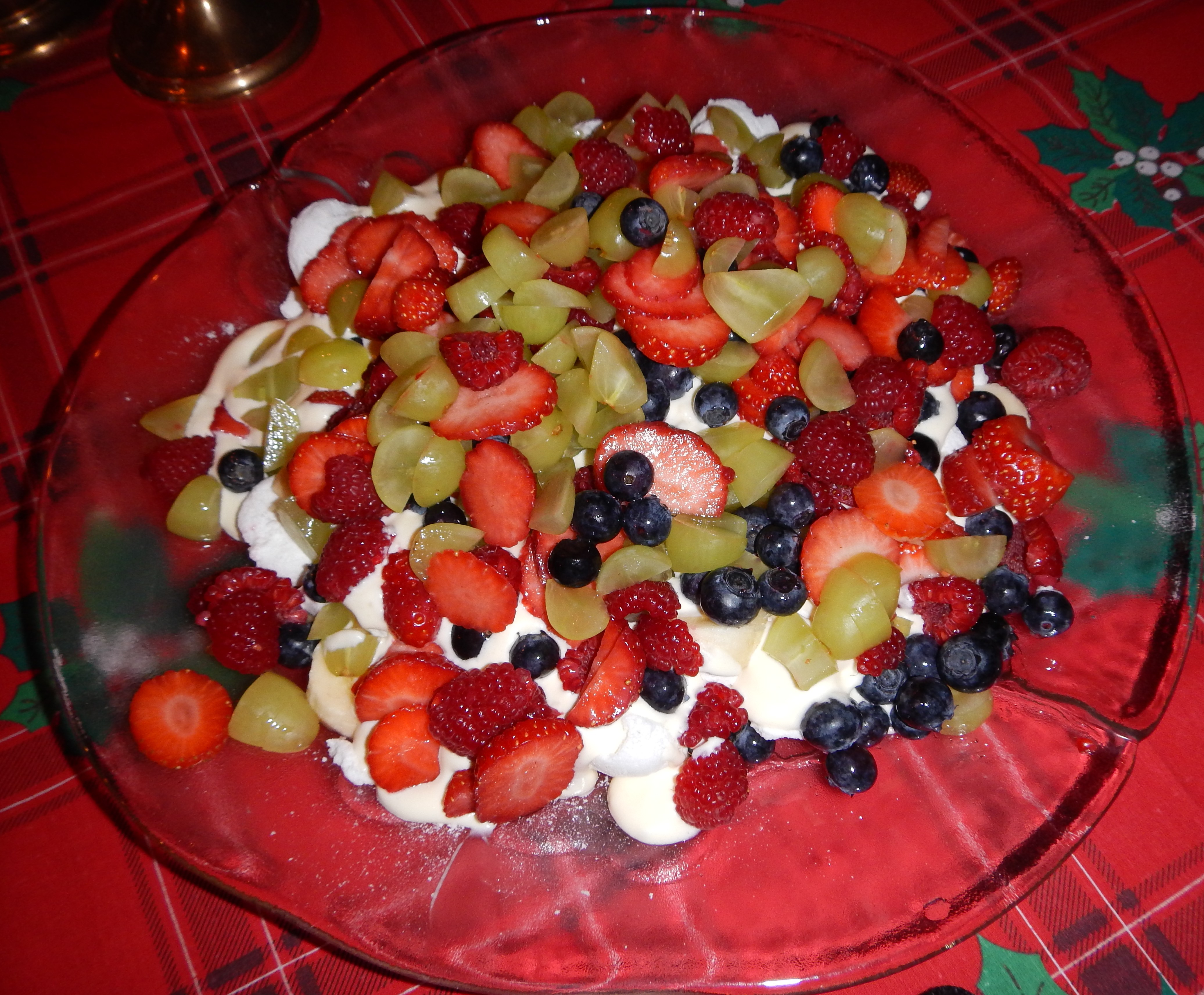 Dessert när man inte vill lägga ner för mycket tid i köket. Lägg några maränger på ett fat, vispa et paket vaniljvisp och häll över. Strö sedan över färska bär efter önskemål.