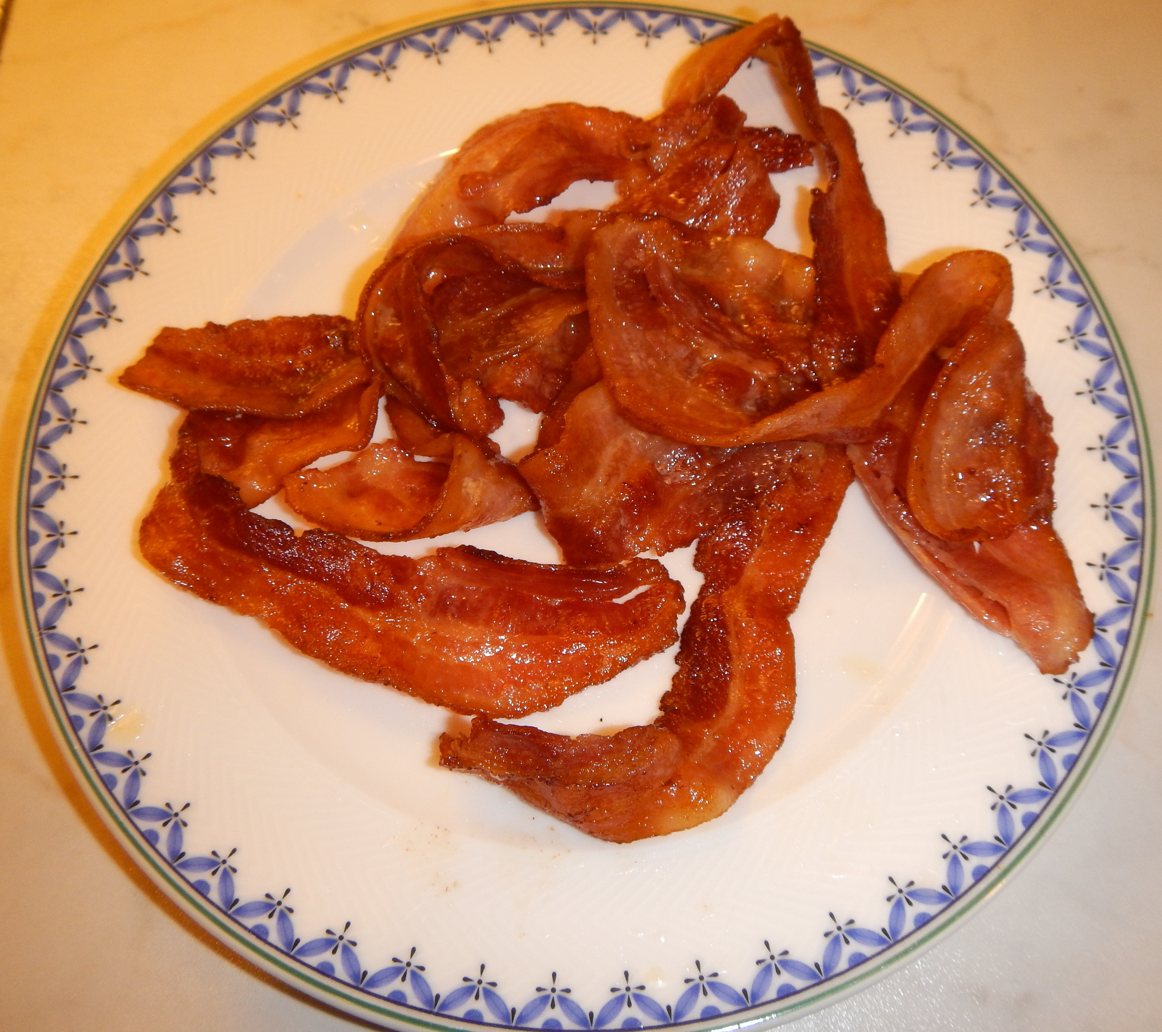 Jag erkänner att jag ibland kan vara lite lättlurad och har dessutom ett behov av att testa saker som verkar lite speciella. Som detta med att steka bacon till exempel. Då vi hade ett barnbarn hos oss i helgen som kom på att Raggmunk, Rårakor eller Rålåpor (kärt barn har många namn, det sista är blekingska) skulle vara gott till söndagens lunch. Det visade sig att hon var mycket duktig på detta och klarade av det från början till slut. Naturligtvis skall det vara lingonsylt (krösamos) till detta men även något med lite salt brytning smakar bra till det hela. Det vill säga, bacon. I veckan såg jag ett avsnitt på You tube hur man skall steka bacon och kunde inte låta bli att prova. Jag vill ha hårdstekt bacon men inte bränd, problemet är att varje gång jag steker bacon blir den hårdstekt (inte spröd) och bränd.