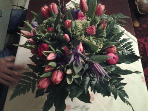 Efter att ha lämnat en plats där det dalade ner väldigt stora snöflingor på den vita marken hamnade vi på Sveriges framsida. Hu så hemskt, grått, spöregn, smutsigt, snöfritt och en hemsk storm. Liknade mer en baksida. Men vad gör man inte när moster fyller 85 år. Nu blir det till att ägna sig åt uppvaktning och god mat, vi hörs igen när jag firat klart.