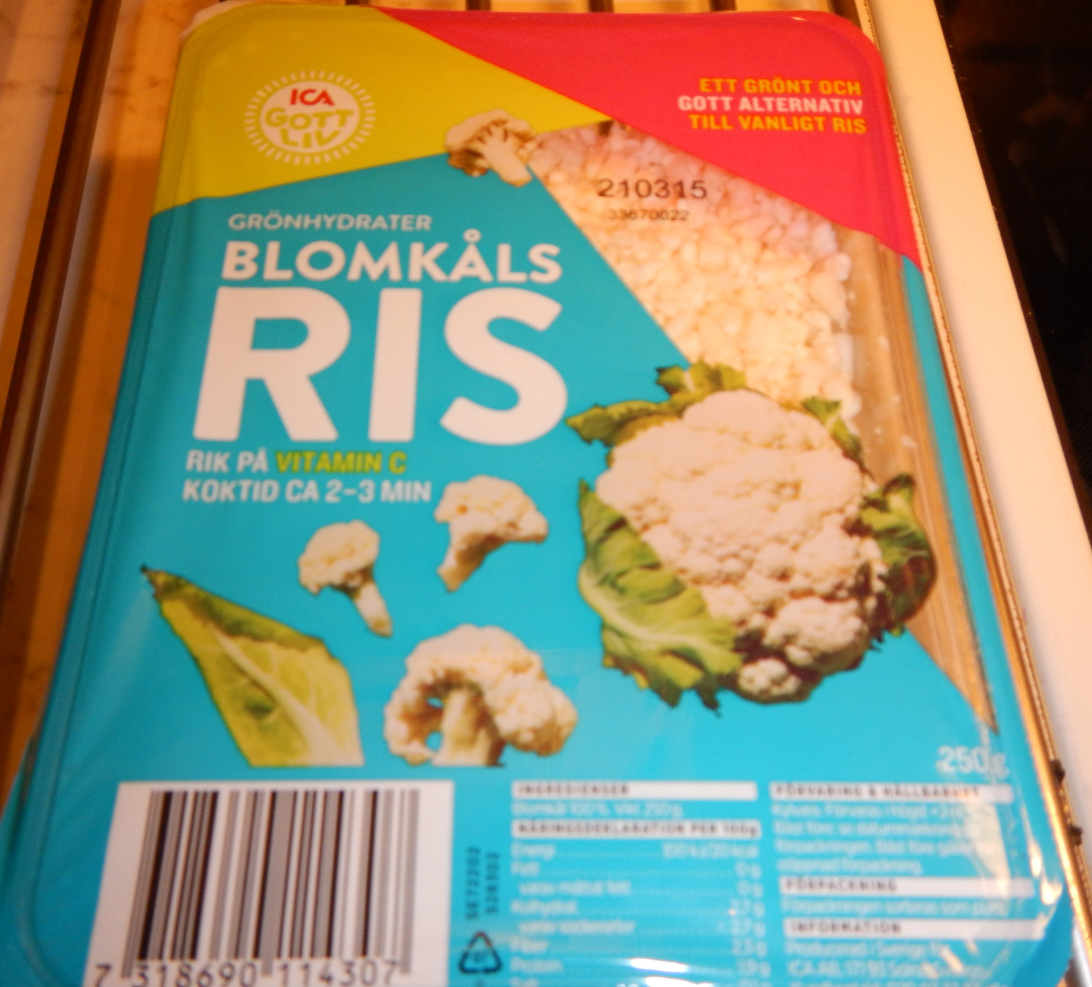 Vet att det finns folk som säger att det är svårt att sluta röka men de ha aldrig varit godismissbrukare, där kan man tala om svårt. I alla fall är det där med att se nya artiklar i affärerna inte begränsat sig till sötsaker, nej allt som ser lite kul ut upptäcker jag direkt. I går såg jag en förpackning med ris gjord av blomkål.