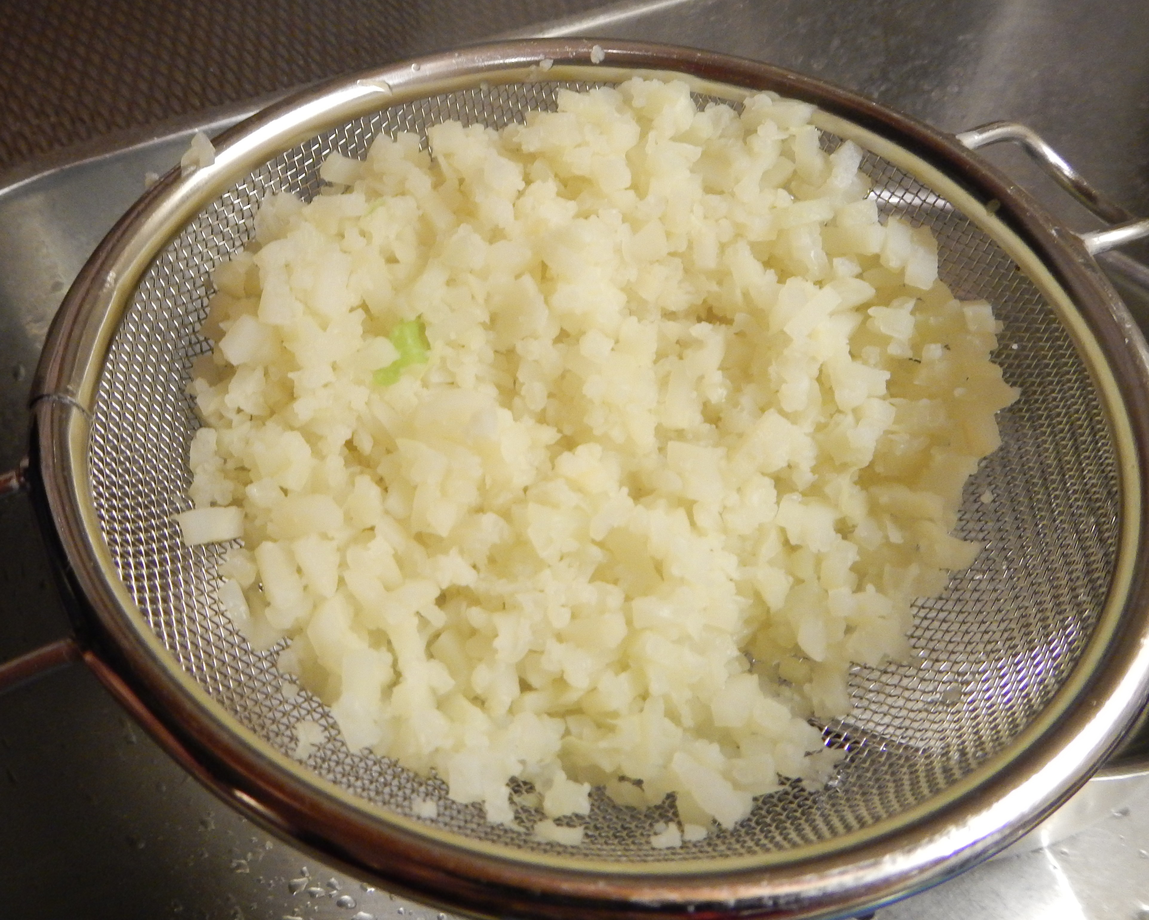 Lite kul på tallriken är det väl och naturligtvis perfekt att blanda okokt i sallad. Skall jag säga ”min sanning” så motsvarar inte varan priset och blomkålen kan man riva själv. Den blir lika bra att såväl koka som till sallad. Även smaken framkommer mer och framför allt blir det halva priset i kostnad. Med andra ord blomkålsris kan ni glömma men en kul idé att riva den och använda i stället för ris fick jag ju gratis.