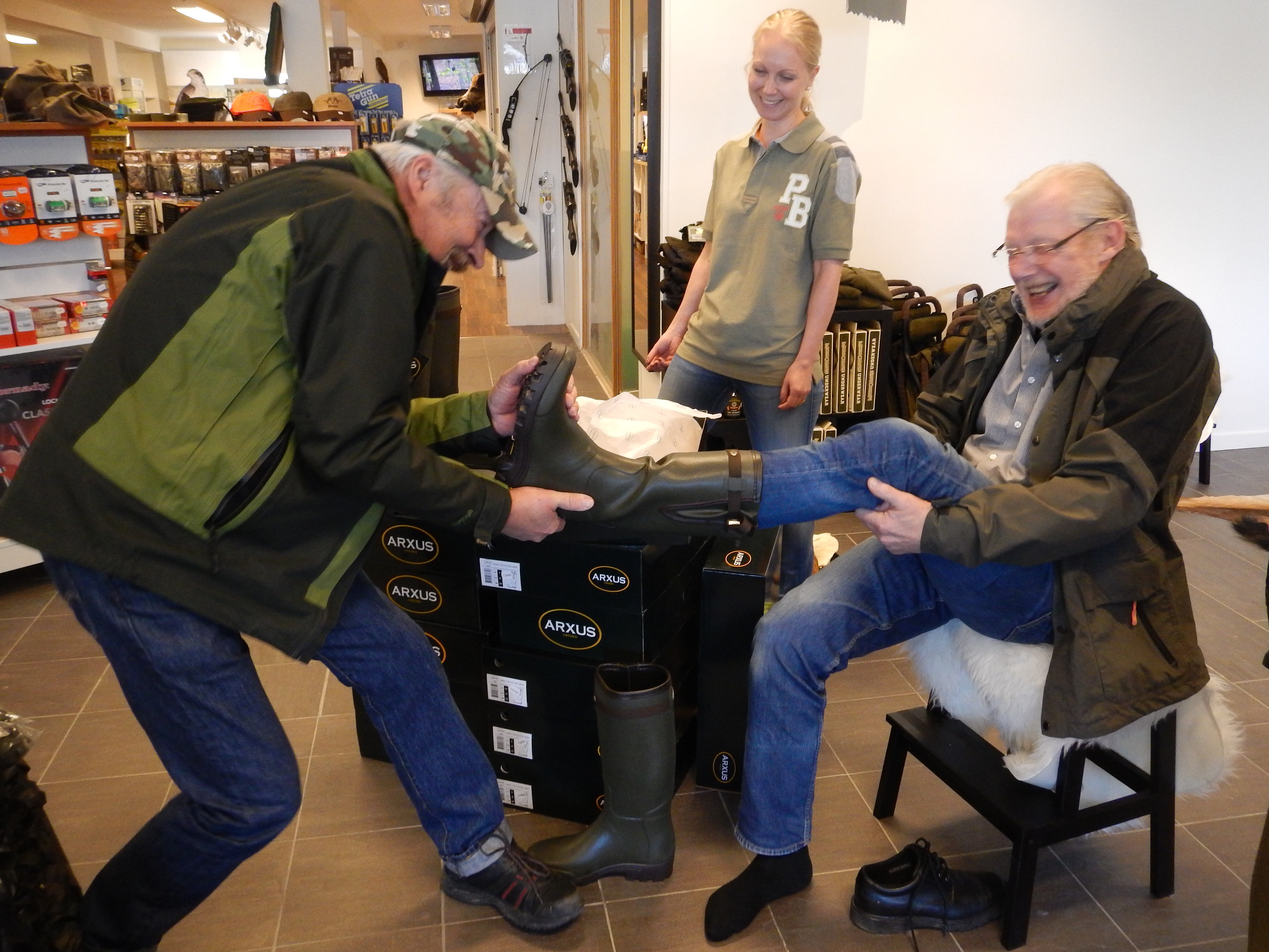 Idag var vi på premiäröppning av en ny butik och Rolf hade tänkt att se på stövlar. Sagt och gjort, han fann ett par vars kvalité och utseende passade honom perfekt. Så var det då storleken, ja han har alltid haft storlek 43 så 43 fick det bli. De verkade dock lite små men skam den som ger sig. Enligt Rolf satt de som en smäck. (Smäck var för slangord för skärmmössa och med ”sitter som en smäck” menas att det sitter perfekt).