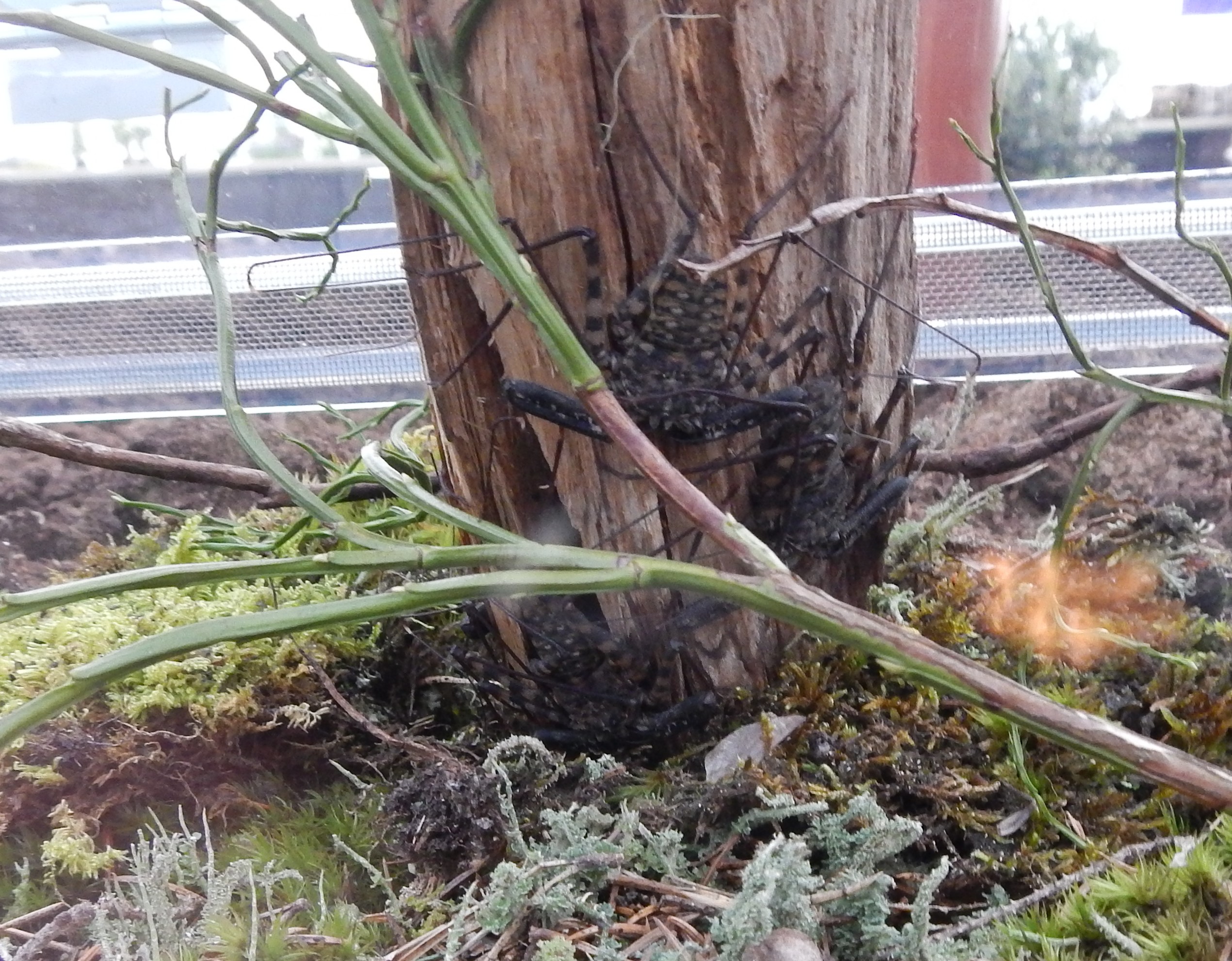 Dessa kryp Amblypyger är inte giftiga och därmed ofarliga men dess kropp är så platt att den ser ut att vara klistrad mot trädstammen. Jag tyckte den gav ett spöklikt otrevligt intryck när jag såg den. Kan faktiskt bli så stor som 25 cm i benspann och lär trivas på alla kontinenter, glad att jag inte träffat på den i naturen. Verkar annars vara ett framåt djur som har lyckats göra sig känd världen över. Inte på grund av sin charm utan på att den medverkat i Harry Potter filmerna.