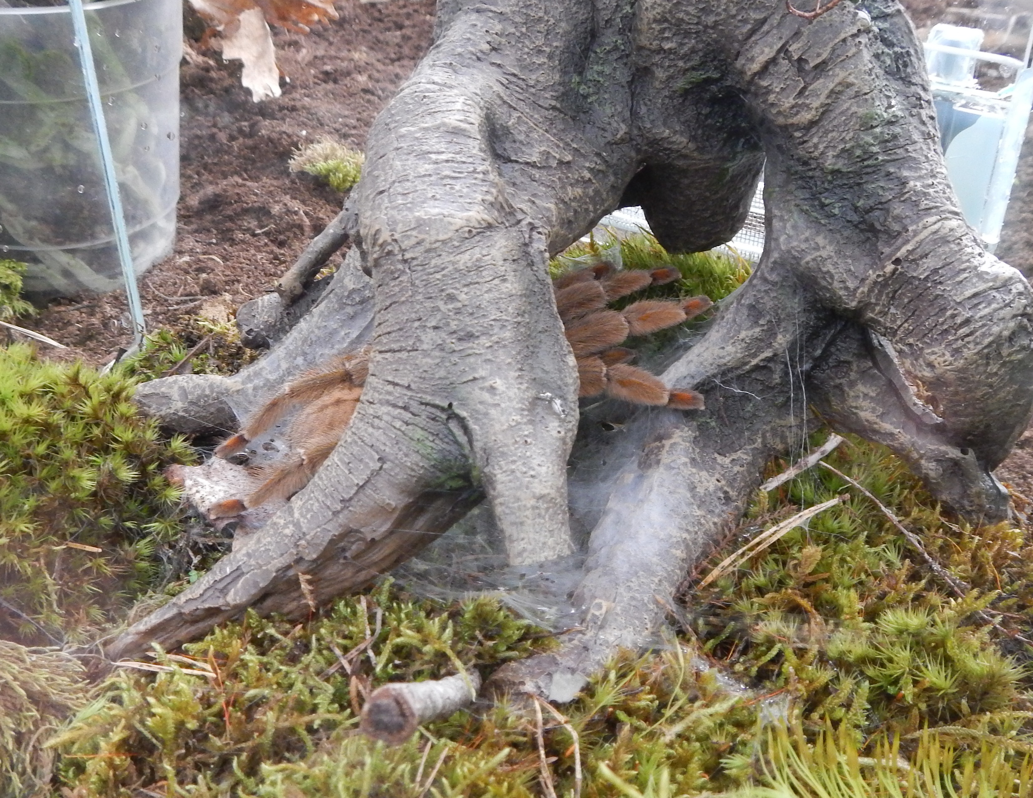 Avstod mer än gärna från att klappa denna lilla söta rosahåriga fågelspindel som kan bli upp mot 12,5 cm i benspann. Hanen lever i 4-5 år men honan kan klara sig upp mot 20 år. Trots sin ganska ringa storlek kan den jaga byten så stora som ”små” gnagare. Barnbarnet tyckte den var söt men inte så skön att klappa, trodde den skulle vara mer mjuk i ”pälsen”.