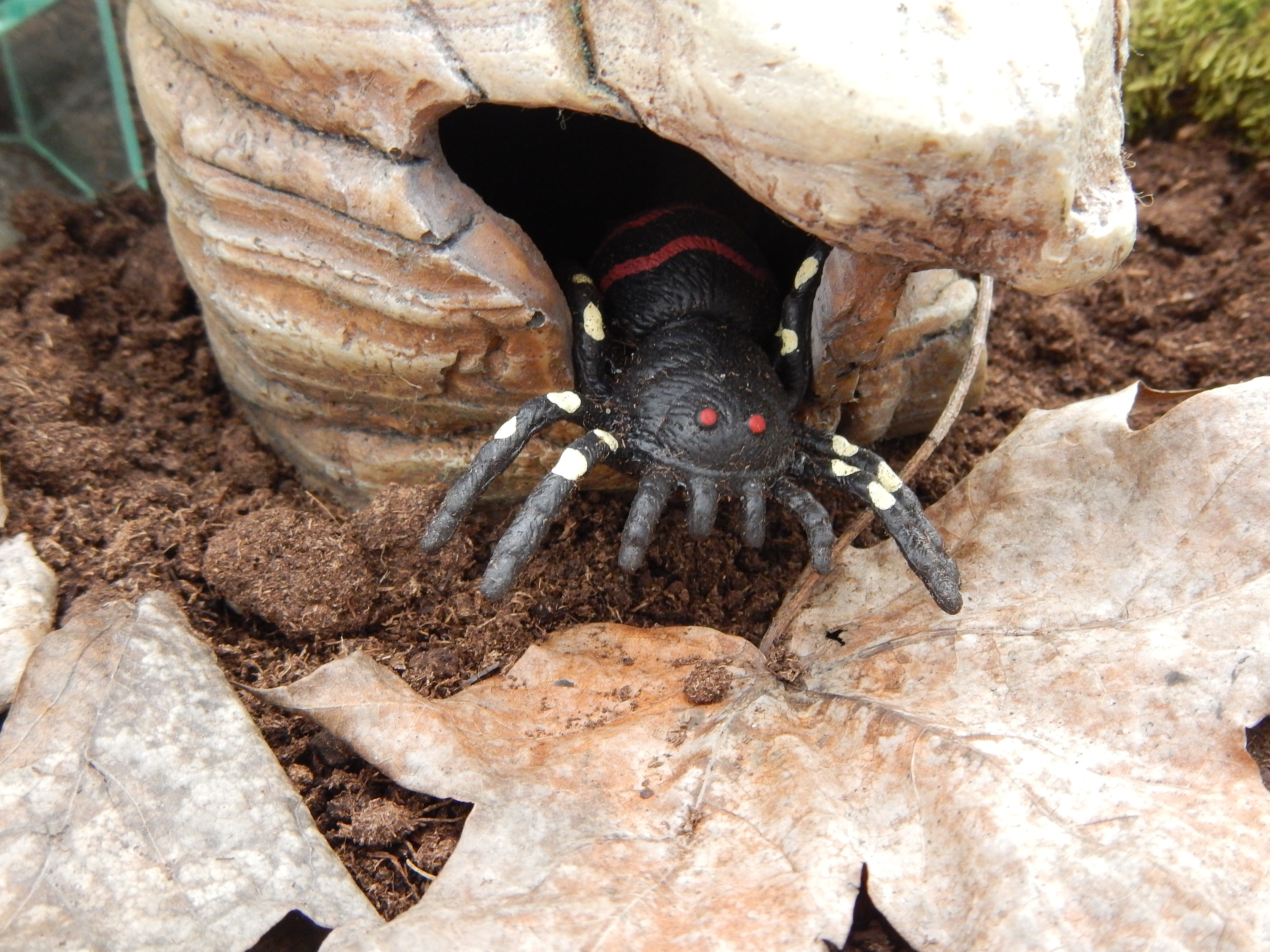Den här spindeln kan jag däremot tänka mig, fina färger, ofarlig och billig. Kostar bara runt en tia i affärerna. Kan slängas när man är trött på den men säkert kan man skrämma någon ifall andan kommer på.