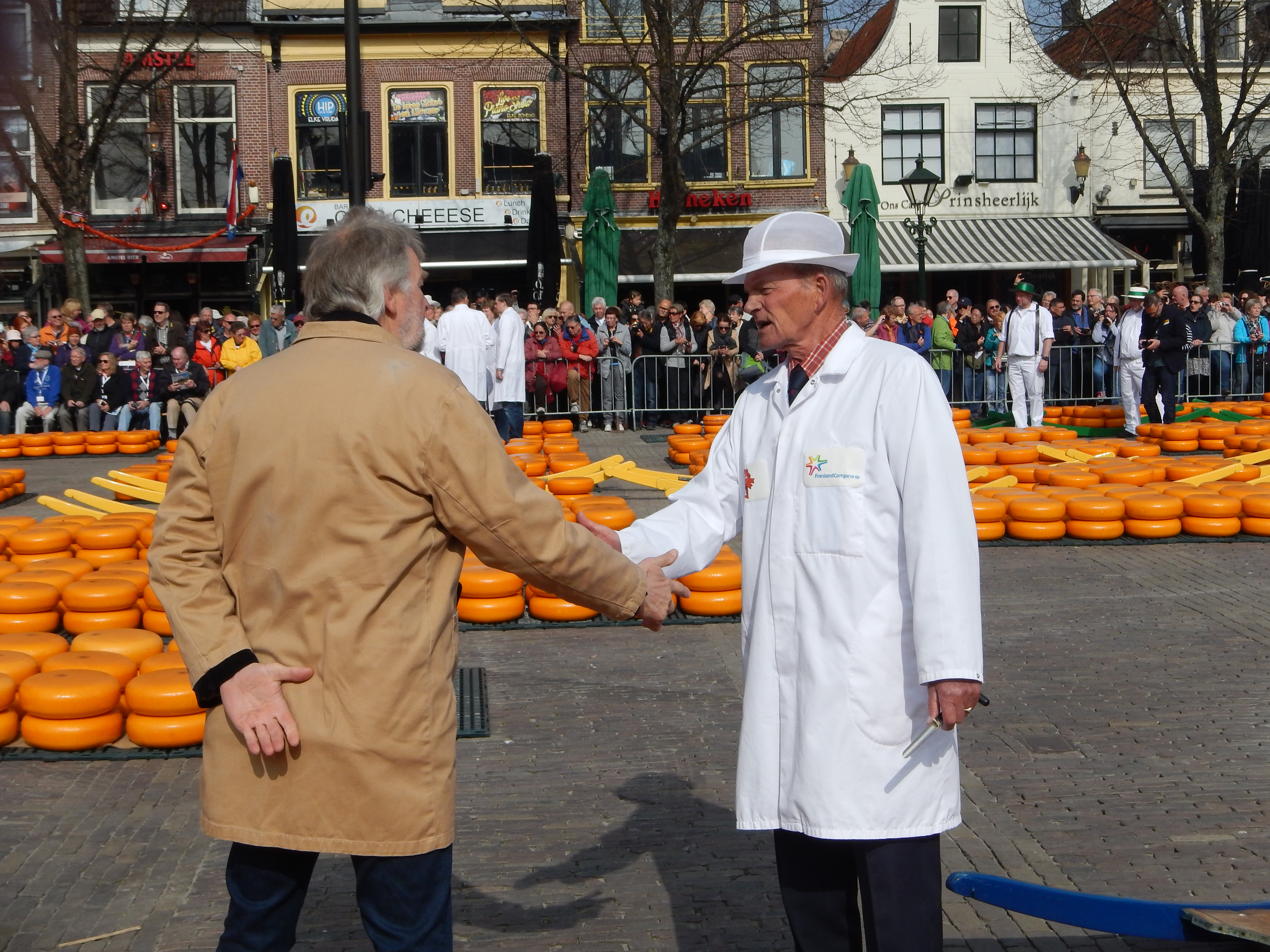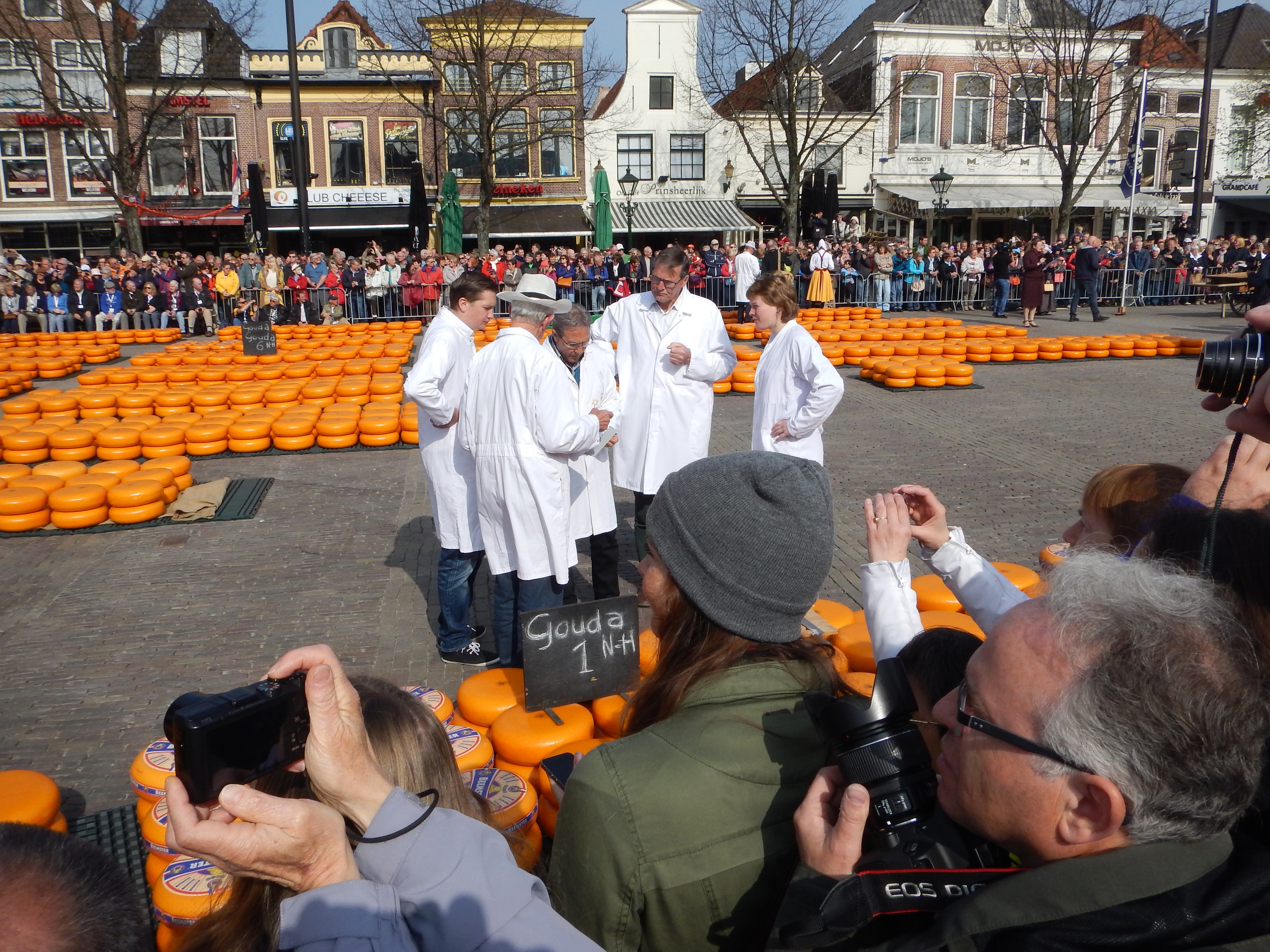 Visst man kan tycka att det med tanke på hur många turister som kantar torget verkar vara ett turistjippo men med tanke på att detta jippot varat sedan 1365 får man väl ändå säga att det är ett genuint jippo. Uppläggning av ost och dess vägning, bärandet av osten och försäljning har samma förfarande so när det startade. Vill man uppleva det bör man vara ute i god tid, gärna en timma innan dess start kl. 10.00 men å andra sidan slutar det inte förrän klockan 13.00. Det var i vilket fall mycket trevligt och lärorikt så man bör inte missa det. Våra reskamrater gillar ost som synes, de verkar få överskrida handbagagevikten.
