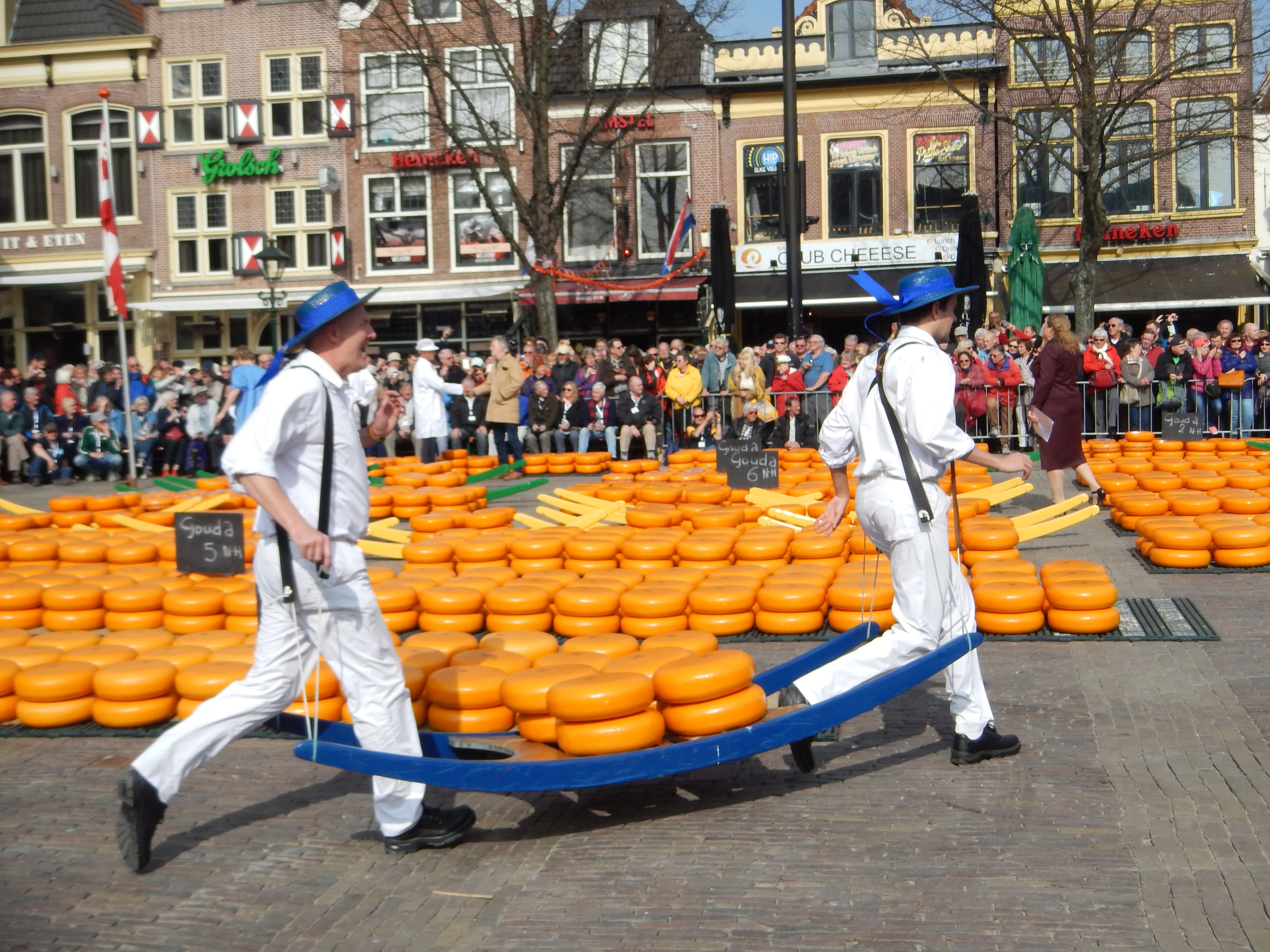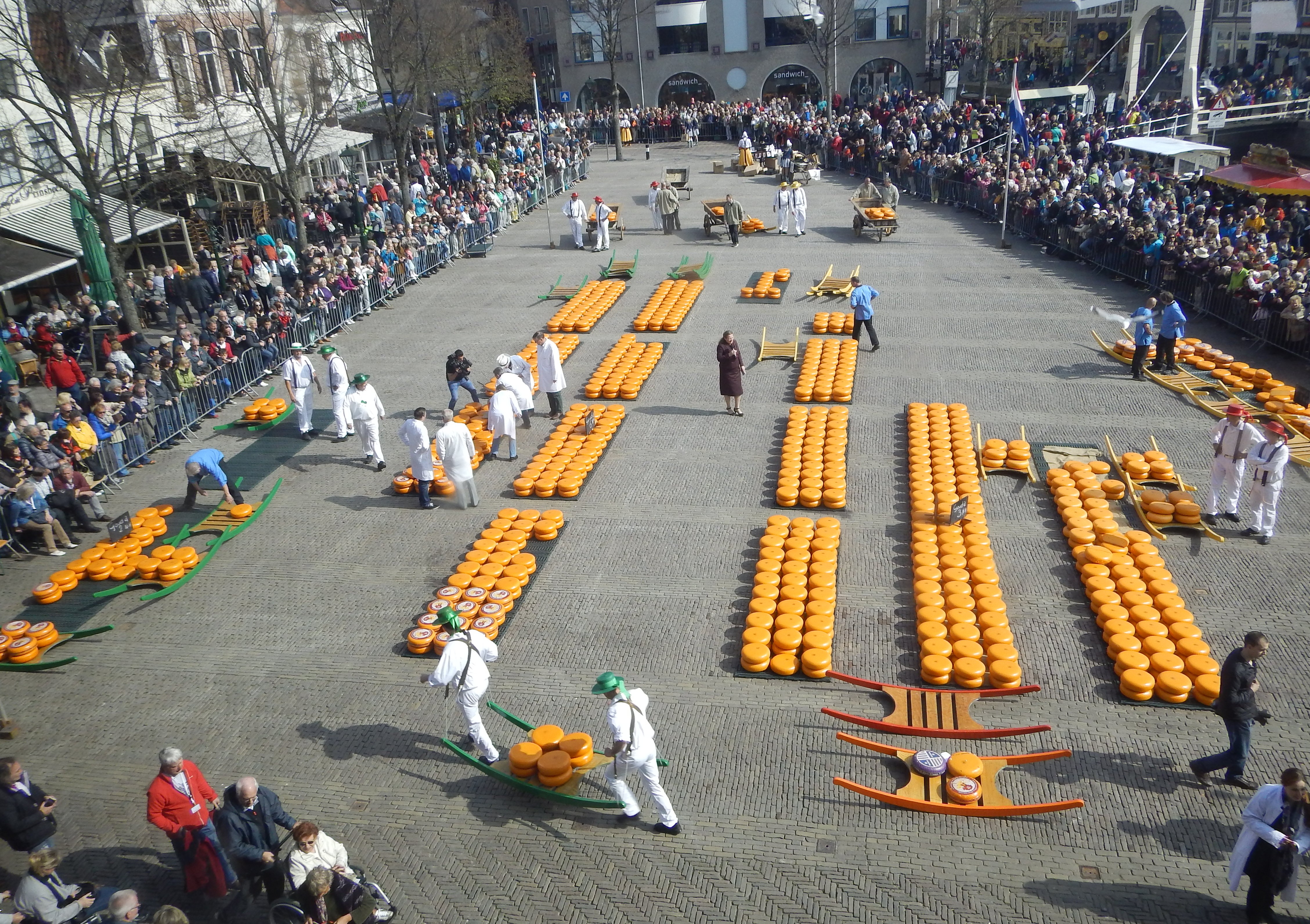 Detta är en liten pittoresk stad belägen cirka tre mil från Amsterdam men framför allt är det ostarnas stad med mångåriga traditioner. I denna stad började tillverkningen av ost redan under 1300- talet, och började säljas på stadens torg Waagplein år 1365. Denna försäljning blev sedan stadens viktigaste händelse och det är ingen liten mängd som säljs. På den här bilden har mer än hälften av ostarna försvunnit.