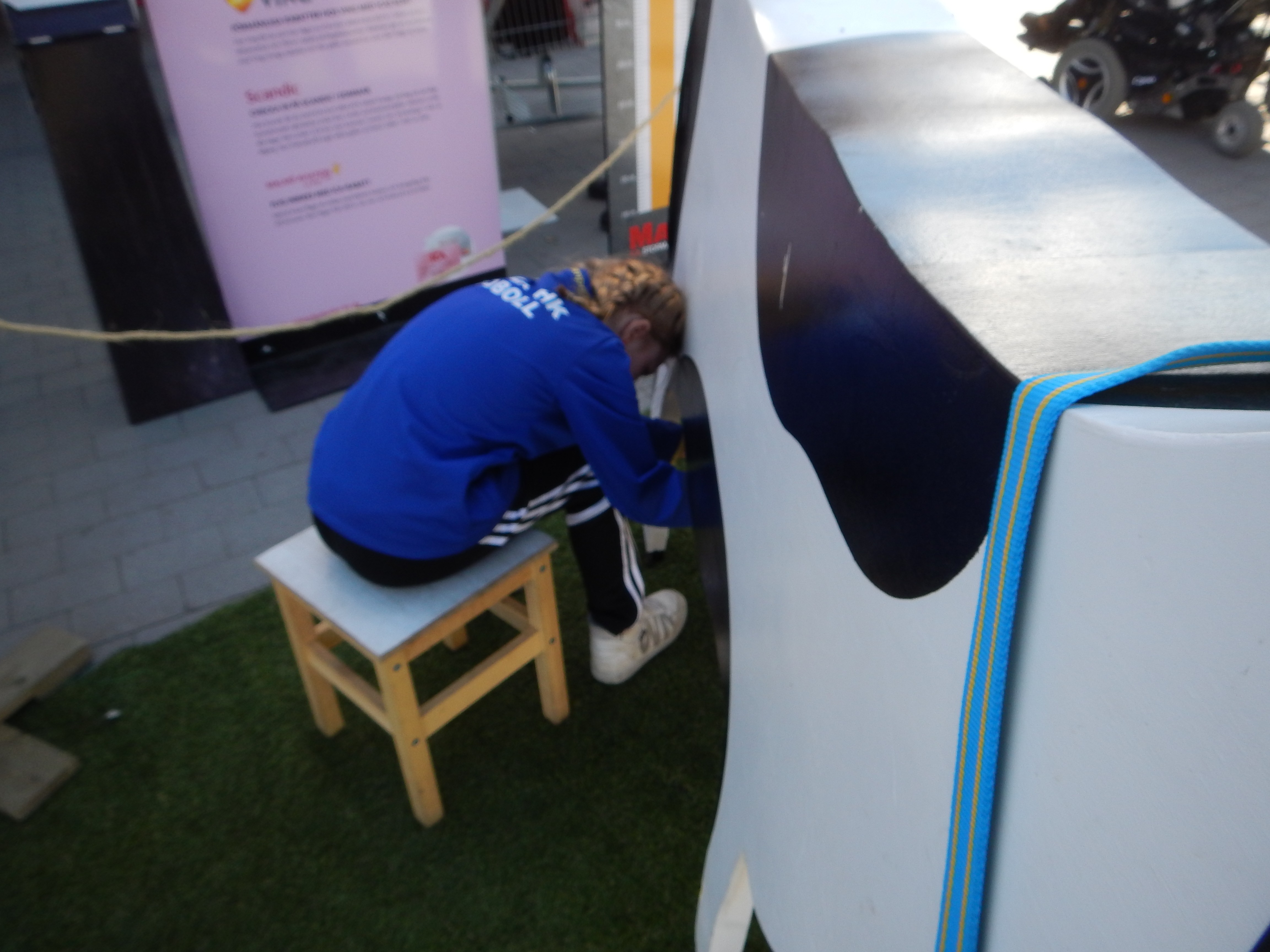 På tal om mjölk så var vi med två av barnbarnen på en liten ”grillfest” på ICAMAXI idag, blev lagom mätta så det blev ingen ärtsoppa. Där fanns det en träko som barnen fick mjölka för att lära sig lite om hur man mjölkar kor. Det kom dock ingen mjölk av naturliga skäl utan vatten.