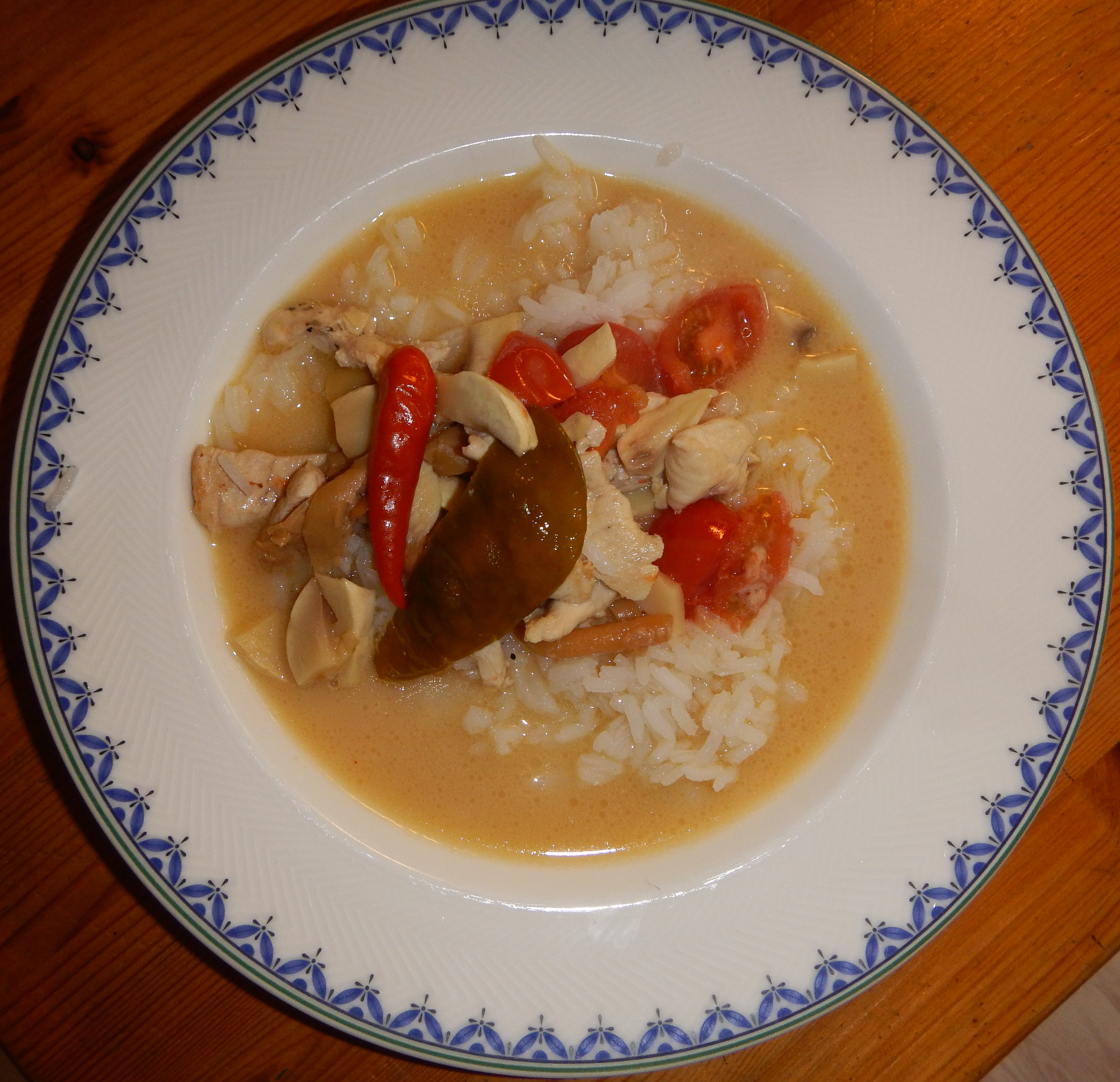 champinjoner, De blåser i träa i da, Gunde Johansson, Jasminris, Kycklingfilé, Skivade champinjoner, thailand, Tom Kha