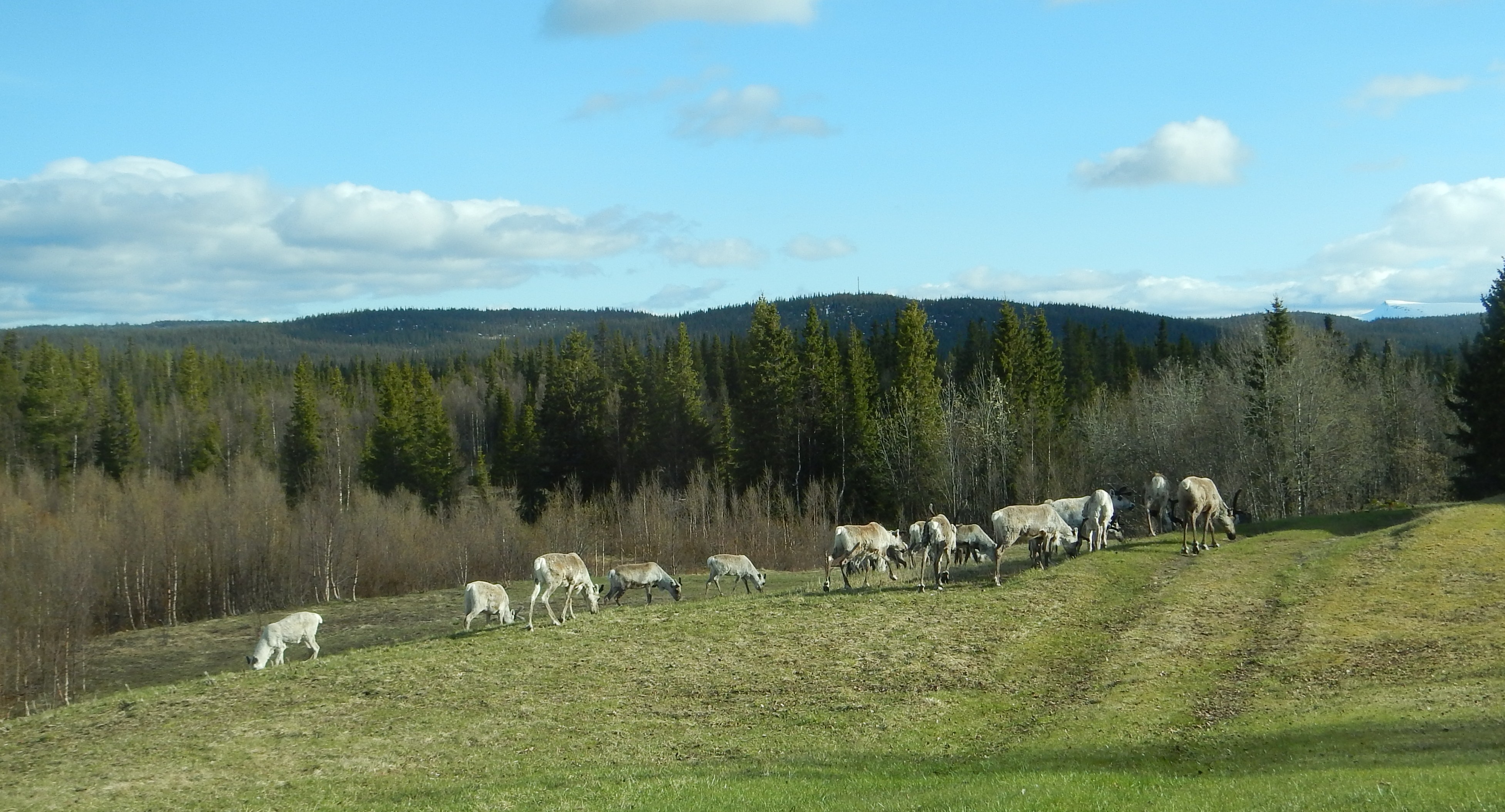 På vägen till affären kan man se fjället som ligger strax bakom den, det är ovanligt mycket snö i år. Kanske blir det mer till helgen då SMHI har lovat snöblandat regn men vi skall inte klaga det är lite soligt och upp till 8 plusgrader på dagarna. Dessutom får vi njuta av renflockar lite här och där. Idag såg vi tre stycken på en sträcka av några kilometer, det händer inte så ofta i städerna.