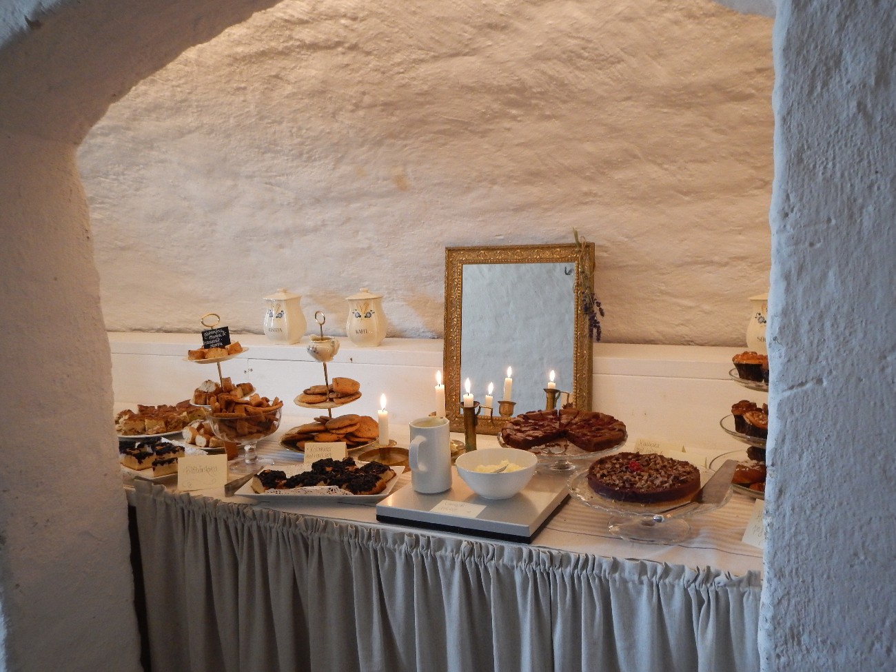 Efter att vi bottnat med dessa nyttigheter var det dags att gå till slottets bottenvåning eftersom det är där man serverar kakbuffé på helgerna.