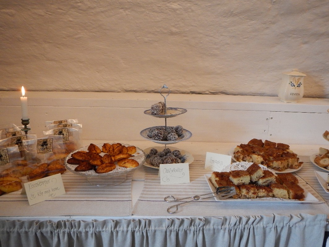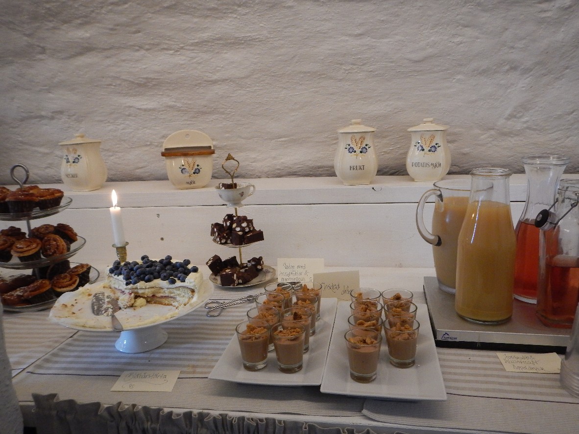 Kaffe, dricka de har en väldigt god äppeldryck och kakor till priset av 125:- för vuxna, så det gäller att ta för sig så att det lönar sig eller hur.