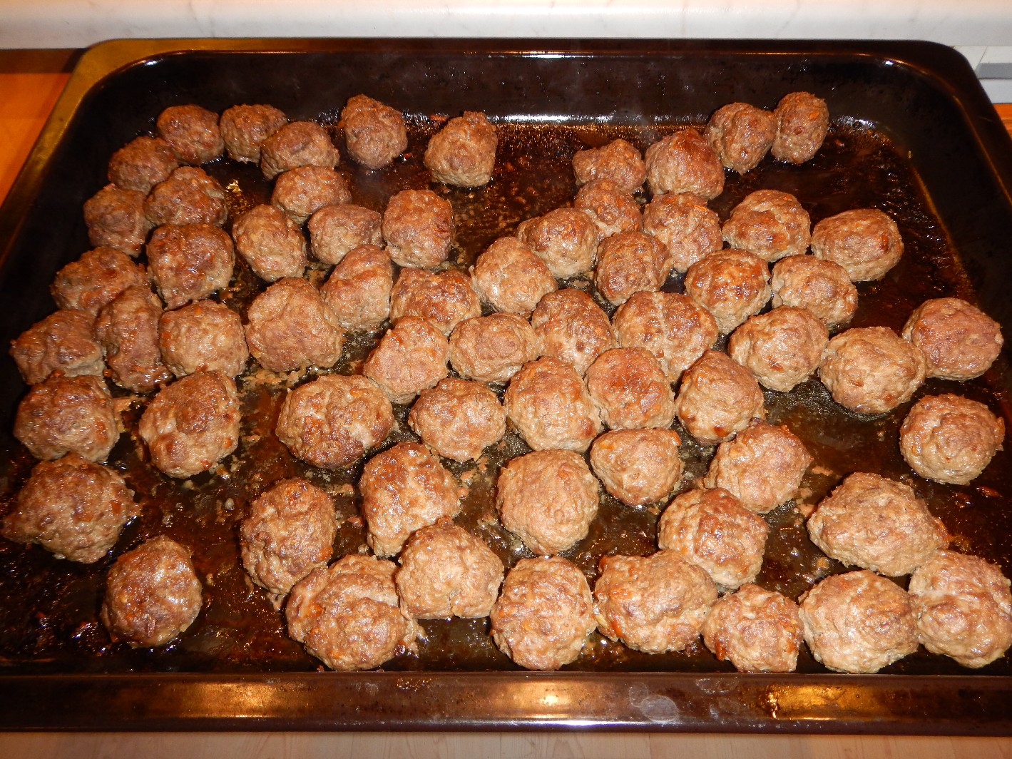 Vips har du perfekt kryddade köttbullar och inte behöver du gråta när du hackar lök heller. Här har jag stekt dem i ugnen 225 grader i 15 minuter, fryses och när de är tinade steker jag på dem i en stekpanna för finare färg.