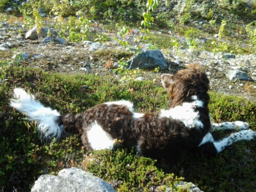 Det gäller dock att inte slappna av, vem vet det kan flyga förbi en fågel eller i värsta fall en björn fast den flyger väl inte. Det har dock synts till en björn i närheten som käkade upp de få blåbär som fanns. Framåt kvällningen var bjudna på middag på fjället, hos våra vänner som har en stuga långt upp på fjället och där man traditionsenligt lagar maten ute.
