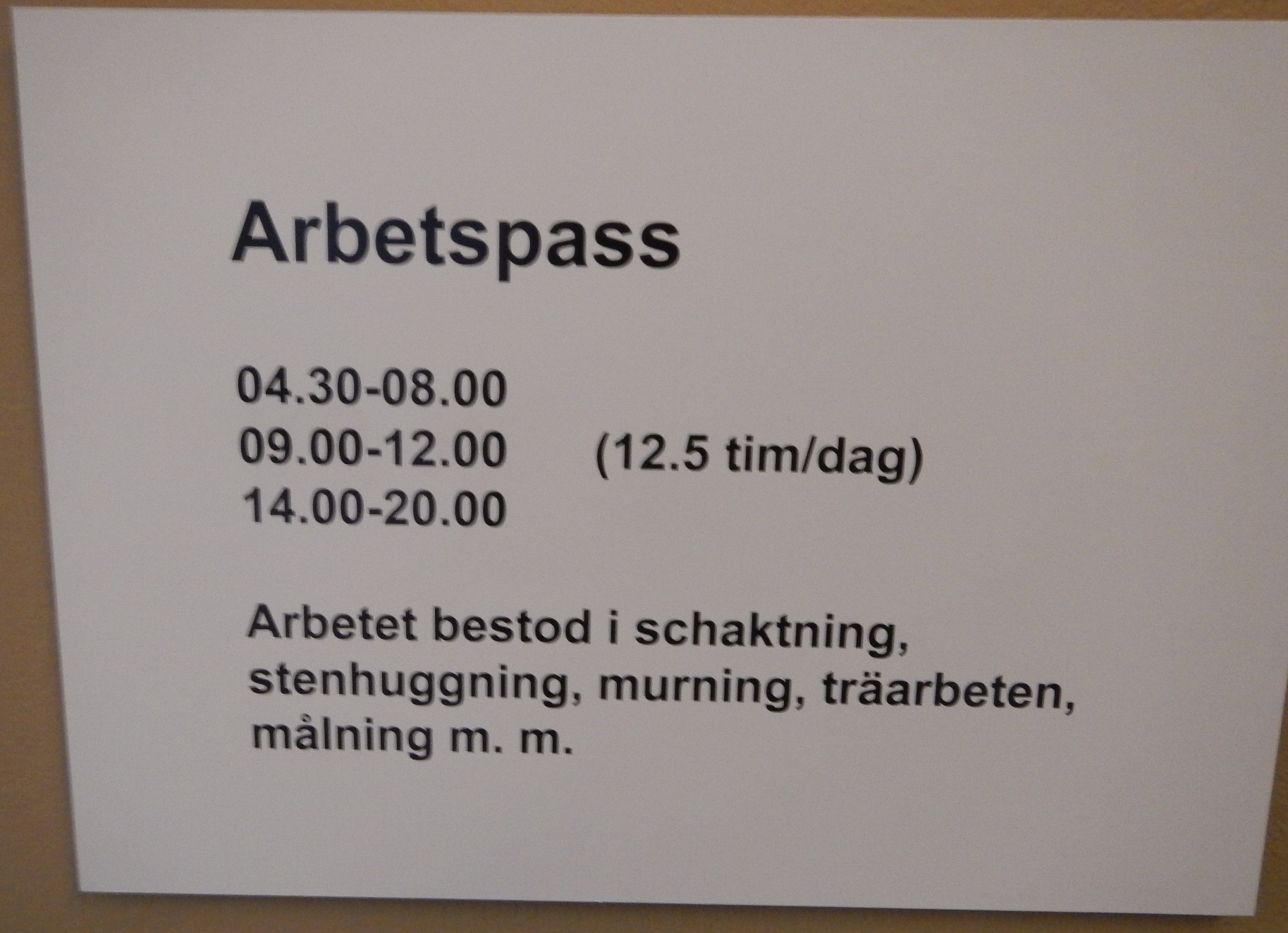 Karlsborgs fästning byggdes inte av sig själv, det var nog åtskilliga arbetare som slet med detta bygge. När det dessutom tog 90 år i stället för 10, ja då passerade nog en hel del människor revy. Ofta när jag besöker gamla byggnader/platser med mera brukar jag blunda en stund, då kan jag nästan se framför mig hur det kan ha sett ut. Inte utan att man är tacksam för att inte ha arbetat på samma villkor som de gjorde. Vilka som byggde fästningen fanns beskrivet på ett anslag och det är nästan synd att försöka omskriva det på något sätt eftersom jag finner varje anslag väldigt givande.