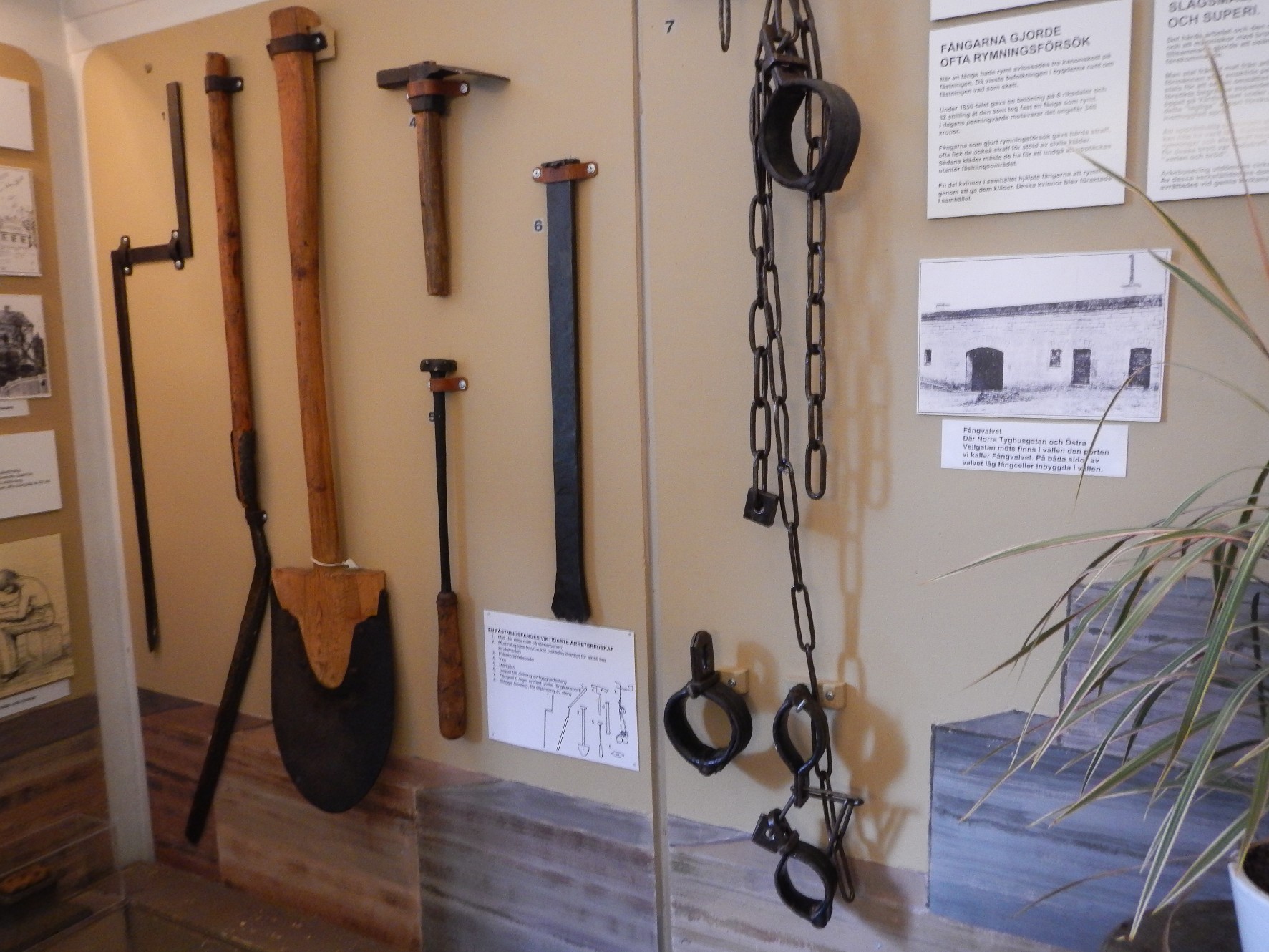 Inte undra på att några försökte sticka där ifrån, detta förhindrades dock av kedjor vilka kan ses på bilden. Man kom inte så långt med fastsatta på benen. På fotot syns även arbetsredskapen, rejäla sådana.
