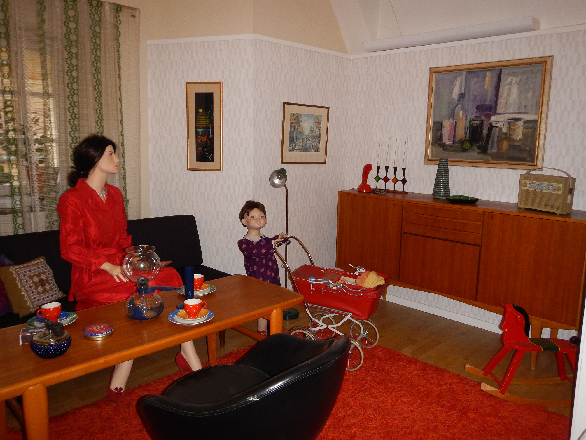 Nu blev det ett stort hopp bakåt i tiden, faktiskt ända till 1950 -60-talet Vi blev lite överraskade när vi gick där på Karsborgs museum, helt plötsligt kom vi in i en nostalgiavdelning. Väldigt trevligt att se så mycket som man kände igen. Teakmöblerna, fåglarna på väggen och dukningen som var lite ”modern” just då.