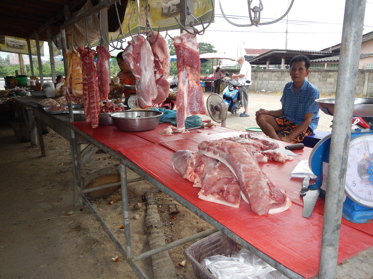 Charkuteributiken för dagen, här handlar många sitt kött för att grilla på kvällen. Tänk vi svenskar som är så petiga med köttförvaringen i butikerna men man tar seden dit man kommer.