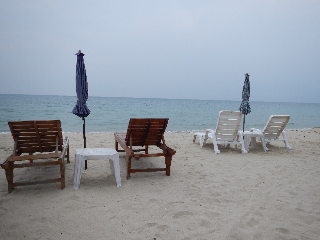 Egentligen borde man ha en bild som visar en massa solbadande människor i täta rader av vilstolar men så är det inte här. En lång, lång strand där man nästan kan känna sig ensam och det är ju det som är det sköna. Tomma vilstolar är en avstressande syn tycker jag.