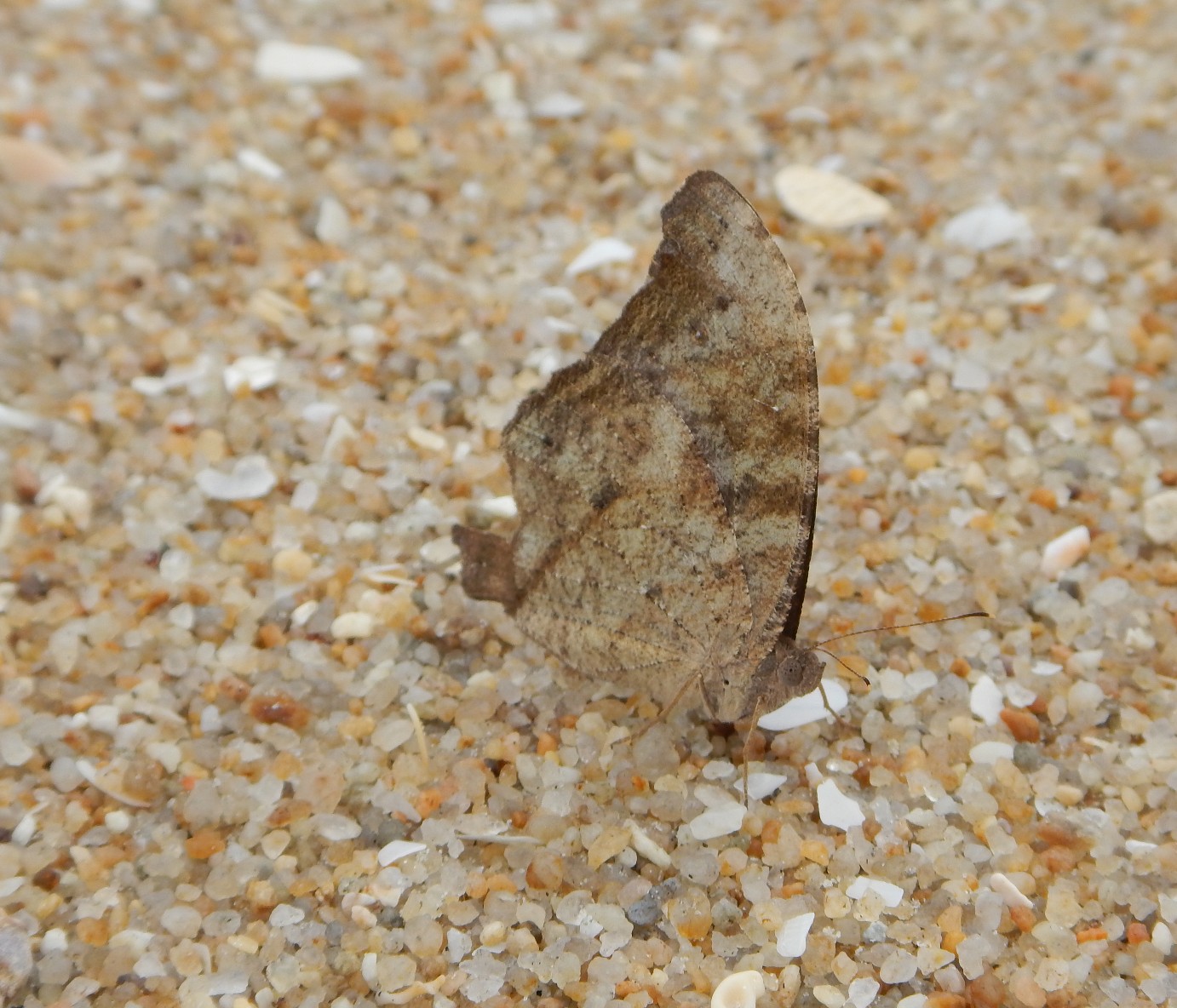Det gäller att ha ögonen öppna, ibland ser man de snabba små krabborna kuta fram o tillbaka eller ser man kanske någon fin snäcka o i värsta fall en färgad manet. Inte alltid lätt att se allting som den här fjärilen till exempel, smälter verkligen i sin omgivning.