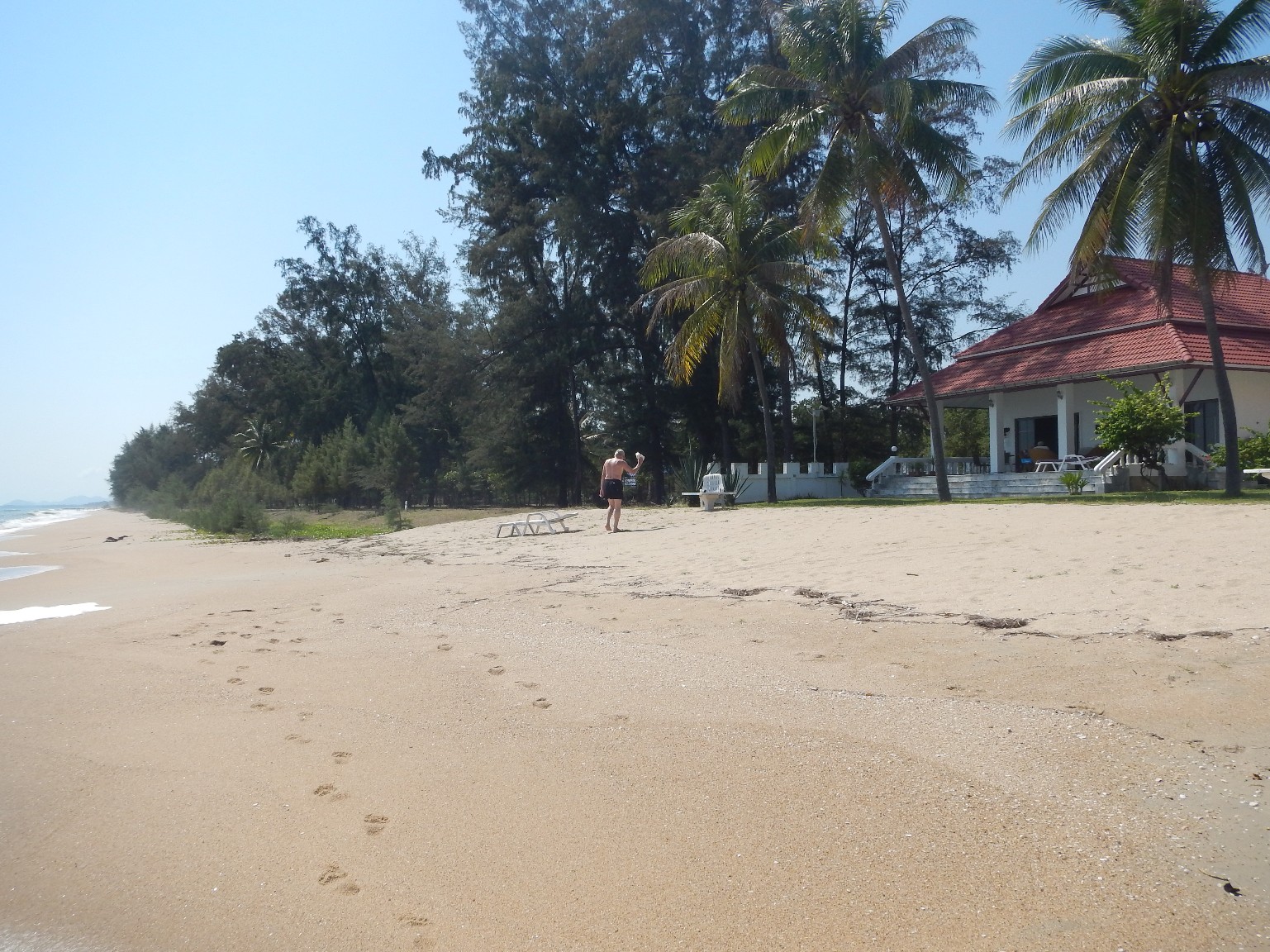Igår beskrev jag hur man kan koppla av och ha en lat men intressant dag utan att behöva lämna husområdet. Idag blir det en promenad efter stranden, vi brukar börja med att ta vägen förbi Orchid 2, det är cirka 400 meter att gå till havet den vägen. När vi kommer ner dit svänger vi höger eftersom målet denna dag är Surin beach och en lunch på restaurangen där. Den här dagen var havet lite oroligt och inbjöd knappast till något bad men väl en fantastisk vy.