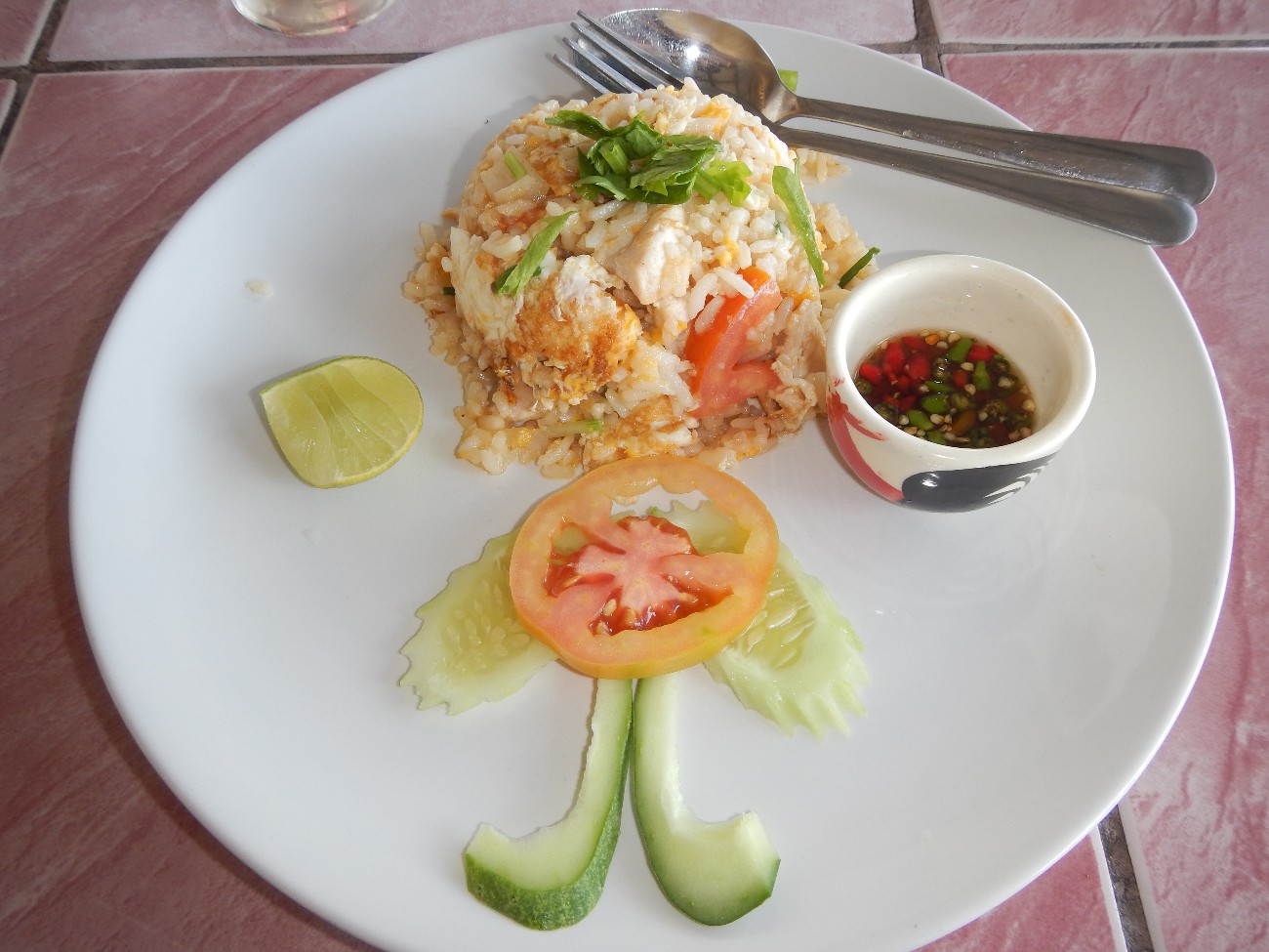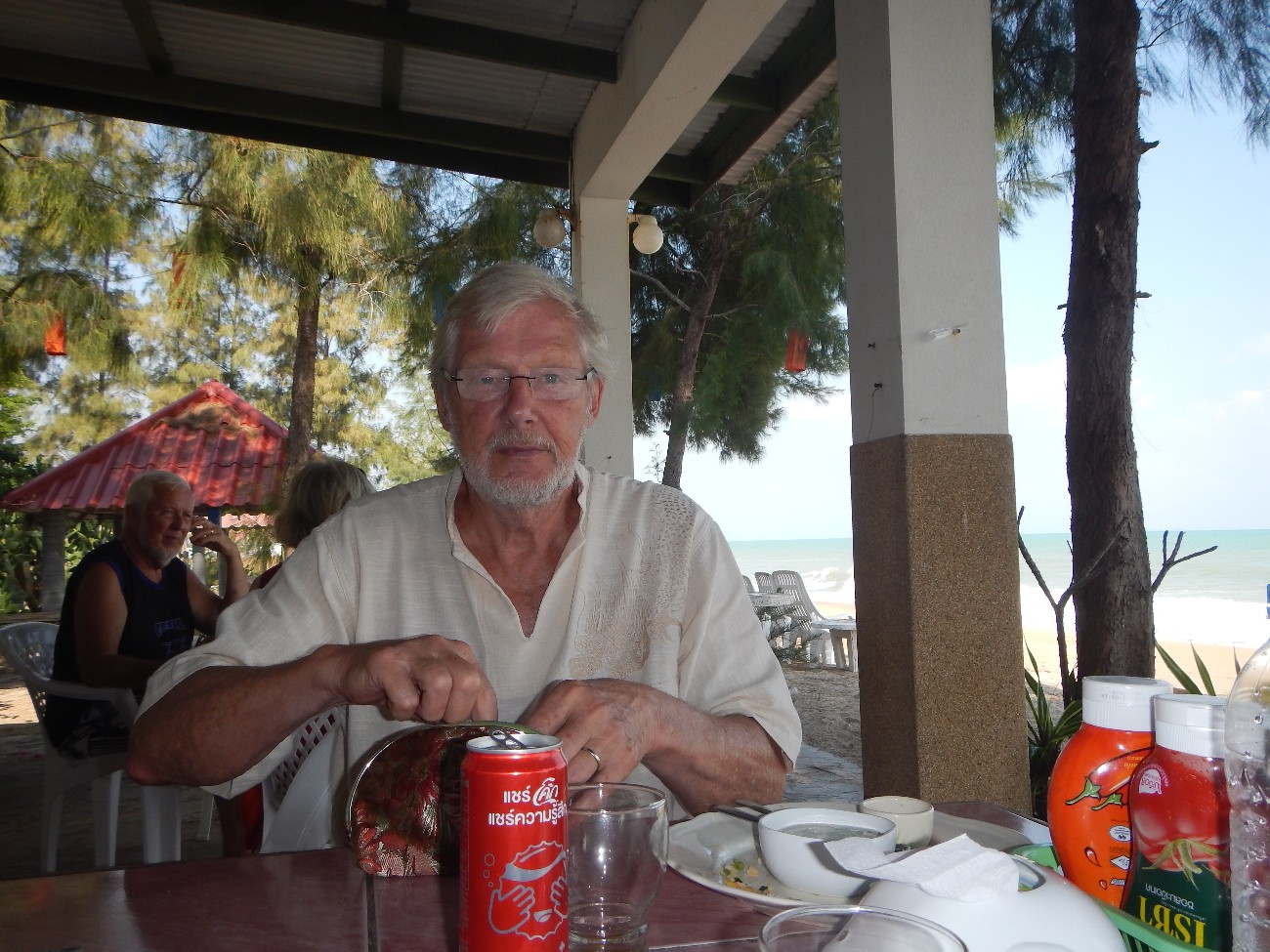 Framme vid restaurangen på Surin beach och Rolf har njutit av sin Pad thai (ris, kyckling, tomat, ägg o lök) hans ”favvo” till lunch-