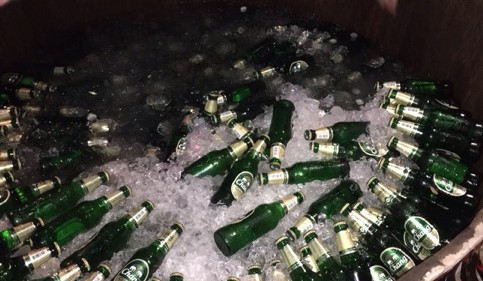 För några veckor sedan visade jag ett foto på en stor tunna och jag undrade vad den var till för, fisk ? Nu vet jag vad den kan användas till, den stod vid kvällens bar och den innehöll is och 2000 flaskor Chang/öl.