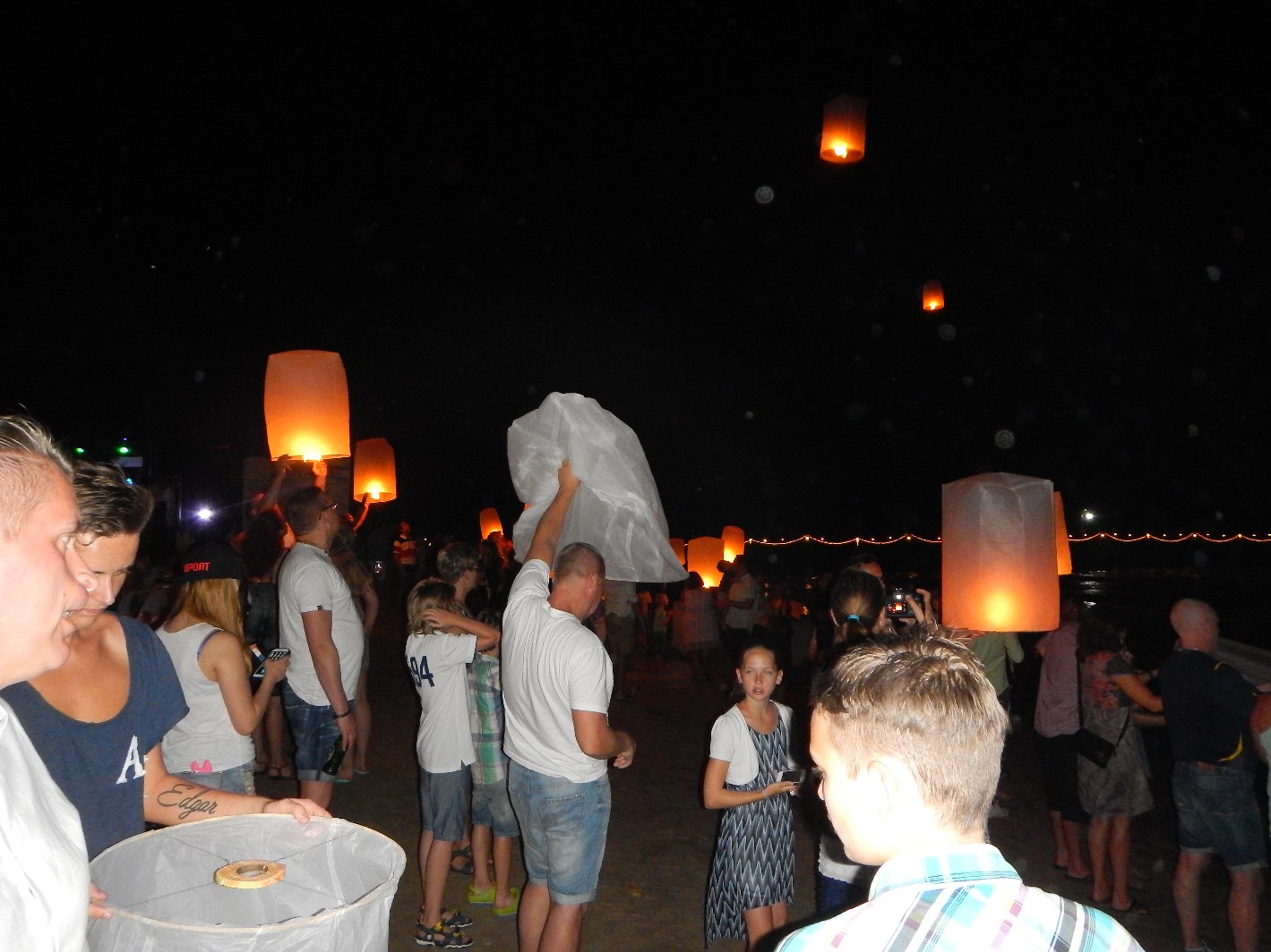 Därefter blev det dags att sända upp Khom Loy en slags lanternor och med dem sände vi våra tankar och förhoppningar till högre höjder. En mycket vacker sed men det gäller att vara vid stranden annars kan det vara risk för brand. att se ett hundratal sakta sväva över havet är helt magnifikt.