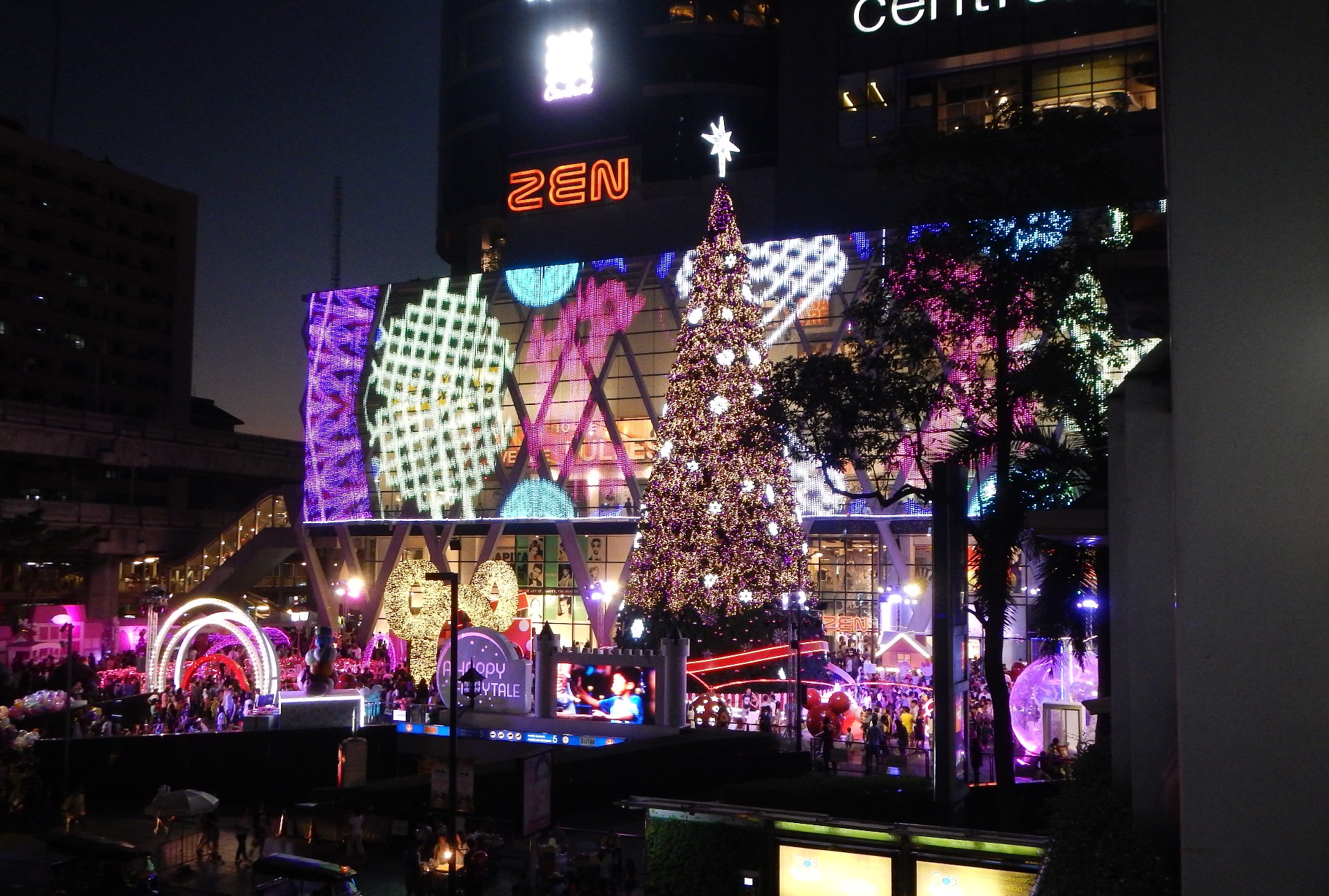 Utanför entrén till Central World lyste det av allsköns färger. På ett stort torg utanför fanns det fantastiska ”skulpturer” kopior av en massa sagofigurer. Där kunde barnen posera och föräldrarna fick foton som de kan plåga släkt o bekantskapskrets med under resten av året.