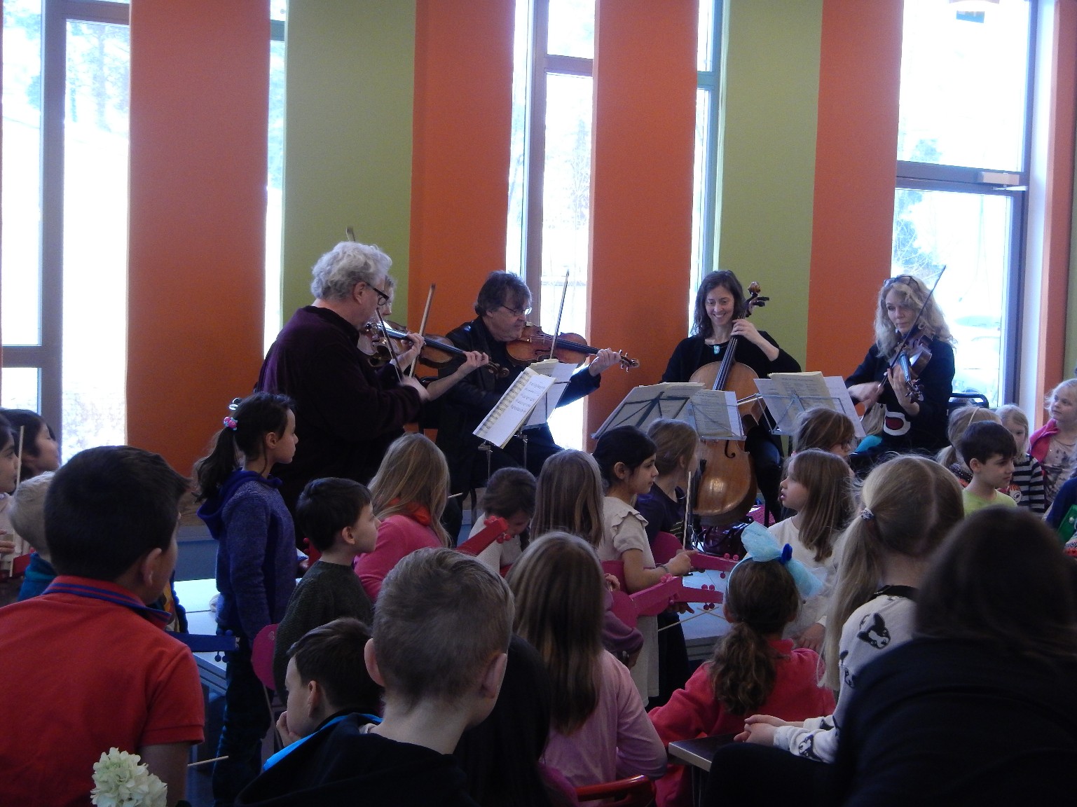 Vi visste att det var Uppsala Kammarsolister som skulle framföra lite klassisk musik och de spelade väldigt bra. Till hjälp (som vi inte visste) under halva programmet hade de runt 70 förskolebarn i åldrarna 5 och 6 år. El-Sistema-barnen (www.elsistema.se)de spelade luftfiol och sjöng vackra sånger. Jätteduktiga och hur de kunde lärt sig texterna så bra förstår jag inte. När de kom in i en lång rad sjöng de, ”Här kommer några ungar som sjunger så de rungar” texten var förstås längre än så. Luftfiol var väl inte en korrekt beskrivning eftersom det var hembyggda fioler i trä utan strängar. Att de här barnen lärt sig både takt och ton syntes tydligt. Takten när de använde låtsasstråken och ton när de sjöng och stod stilla trots ålder och det stora antalet barn