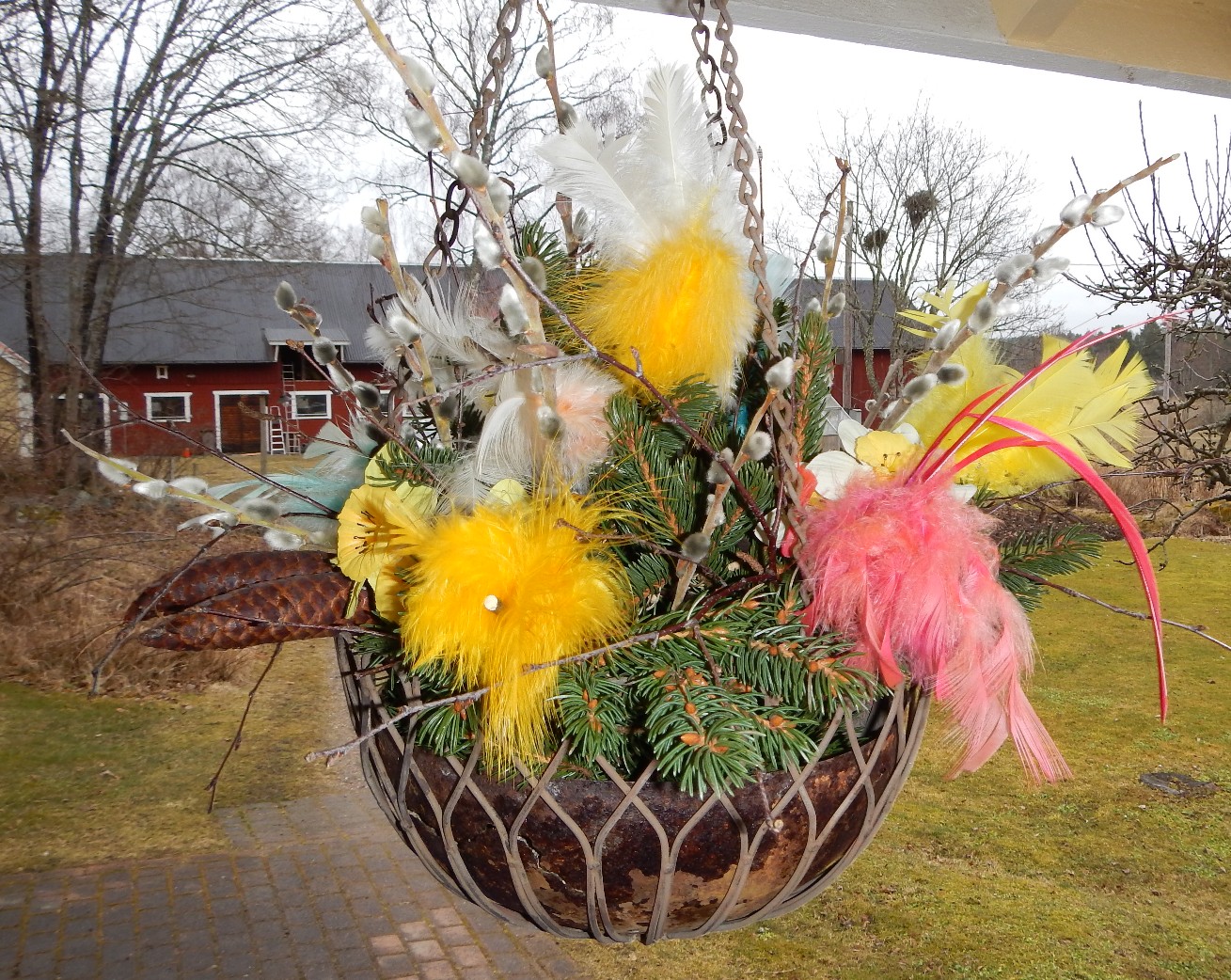 Det blev en dag på landet och det första som mötte oss var en härlig påskdekoration skapad av värdinnan själv.