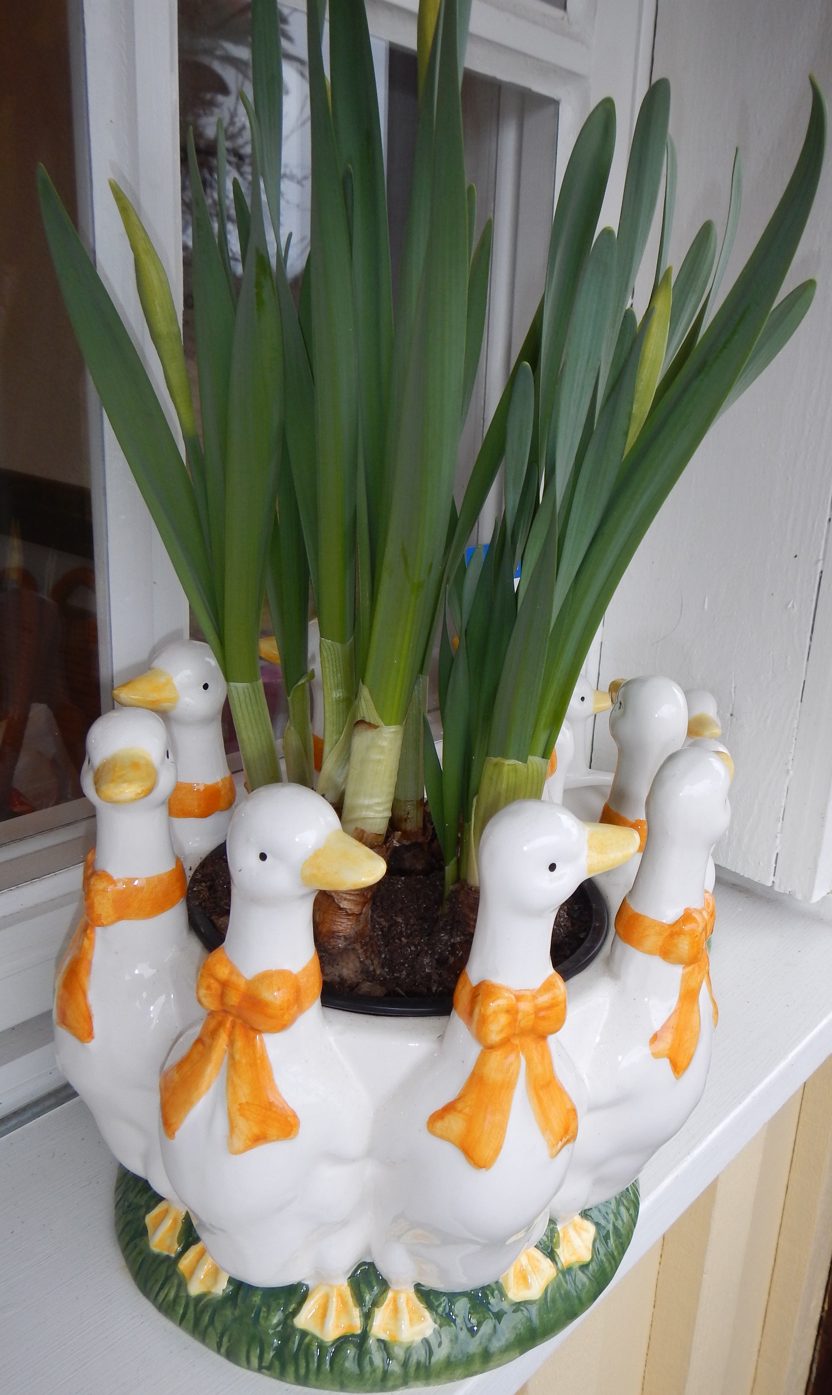Den obligatoriska ankkrukan åker alltid fram vid denna högtid och nog är det en fin prydnad vid trappan.