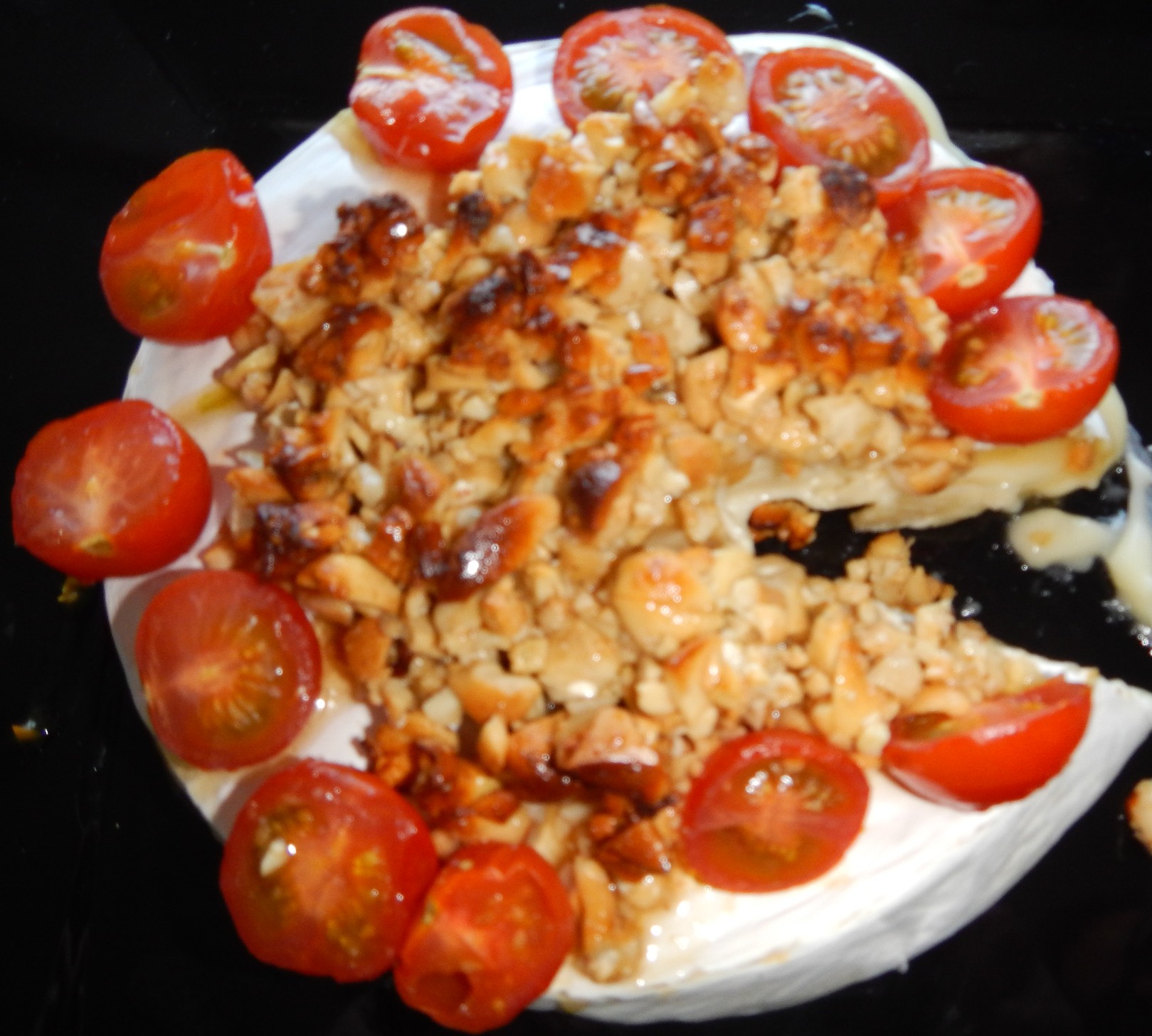 På detta kom en ostbricka med bland annat en brieost med en topping av blandade salta nötter i honung, den serverades varm så där så osten smalt och nötblandningen blev knäckig.