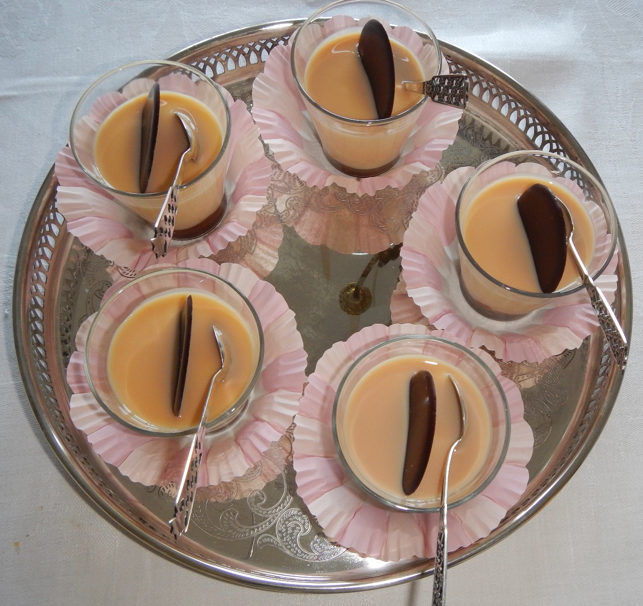 Desserten bestod av en chokladpannacotta toppad med glasslikör. Nedan syns några.