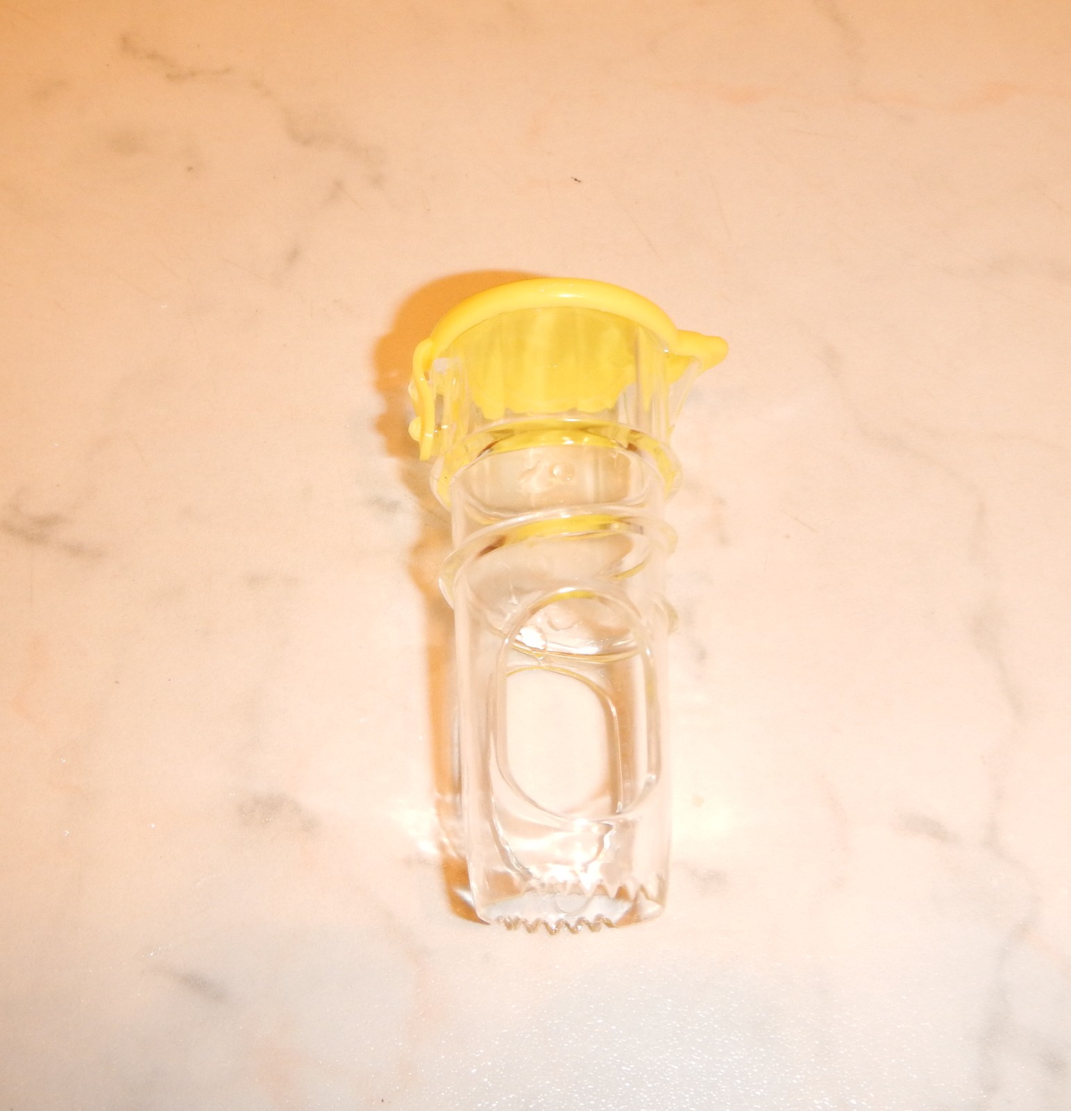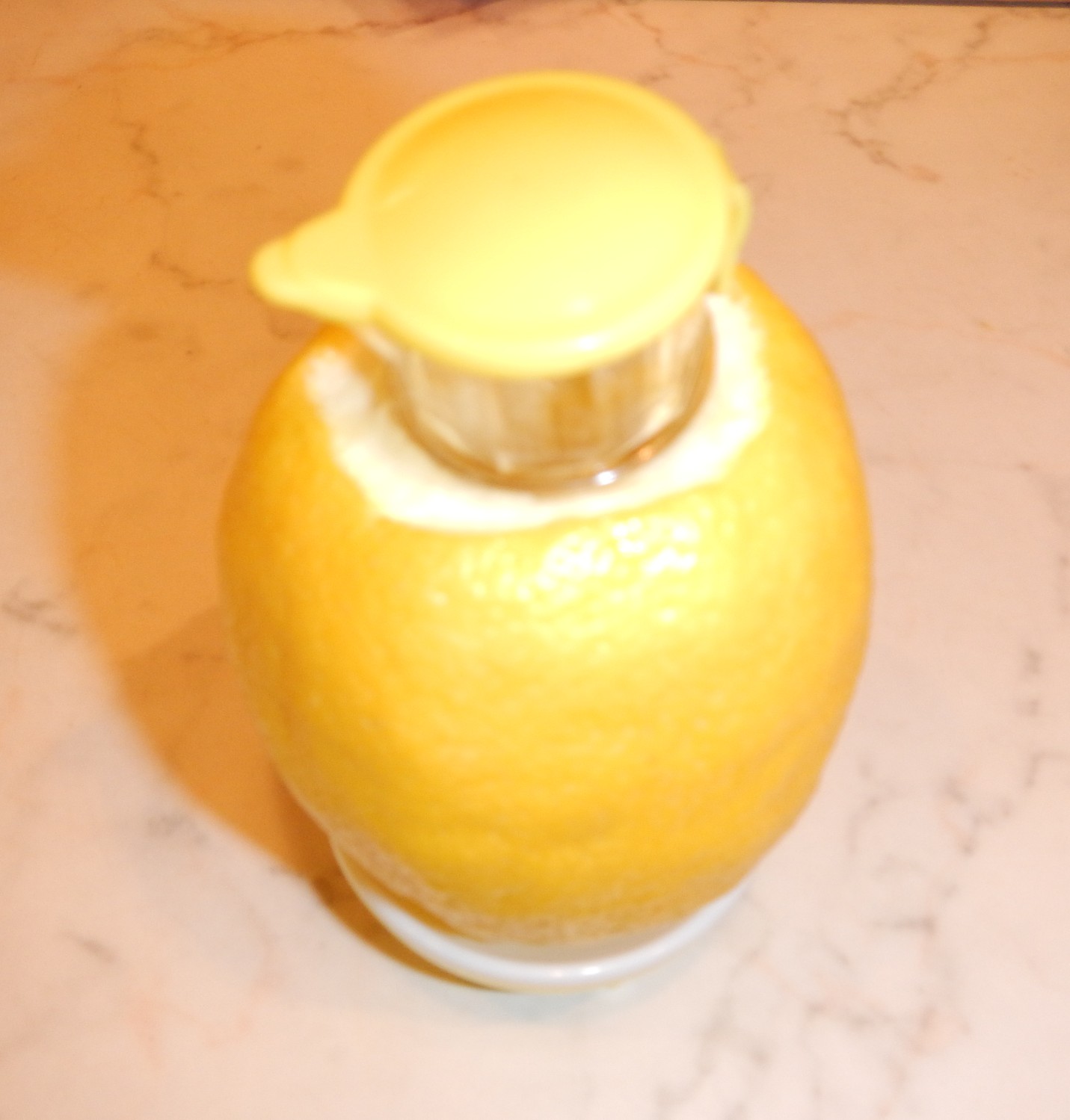 Den är som en litet rör med lock, man pressar citronen mellan händerna och skruvar sedan ner den i citronen (citronpress). Den blir då som en liten kanna med lock och man kan hälla ut citronsaften väldigt enkelt.