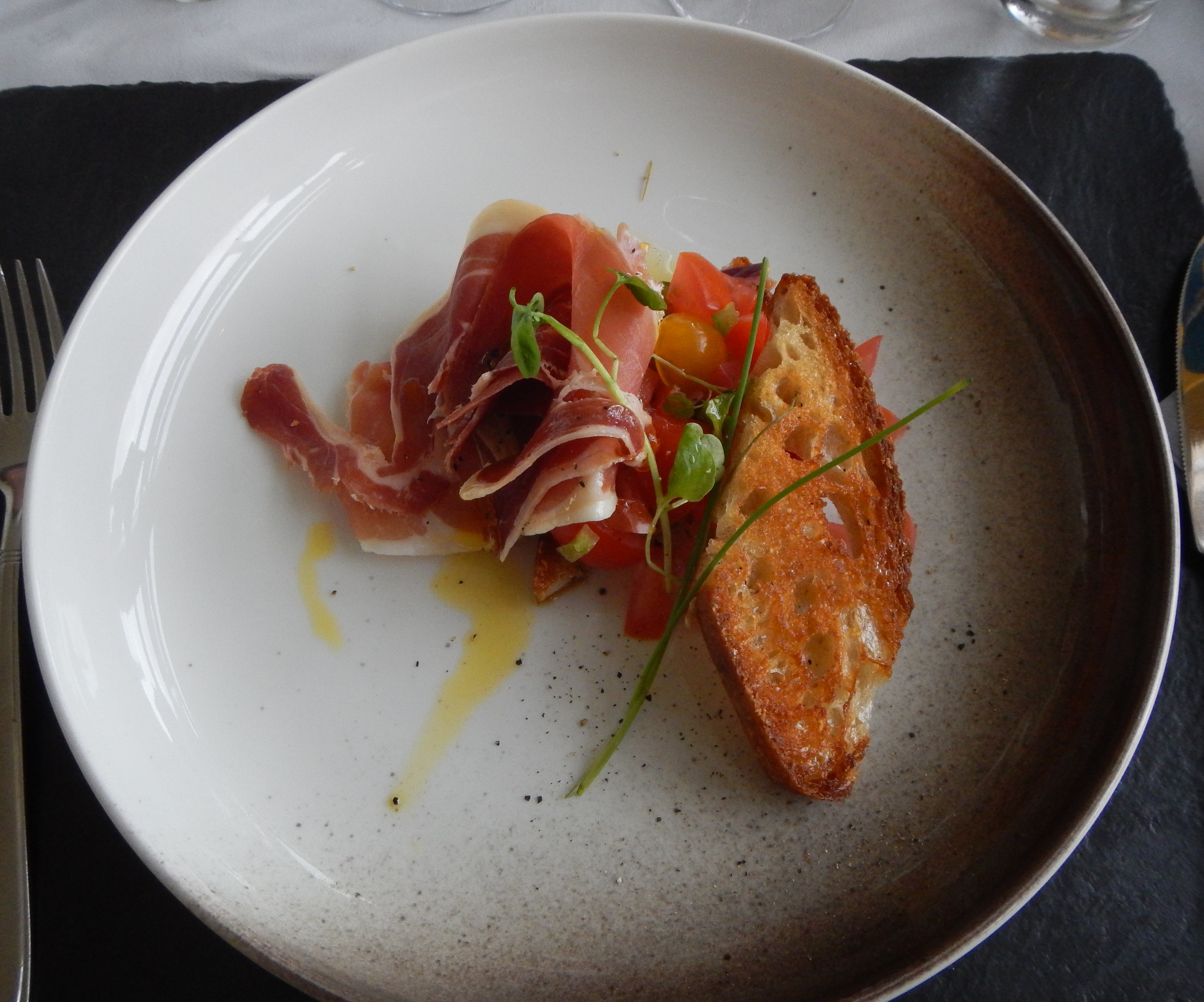 Kan man inte äta skaldjur finns det andra alternativ, exempelvis prosciutto med salsa. Ser onekligen inbjudande ut och enligt de som avnjöt den fick rätten full poäng.