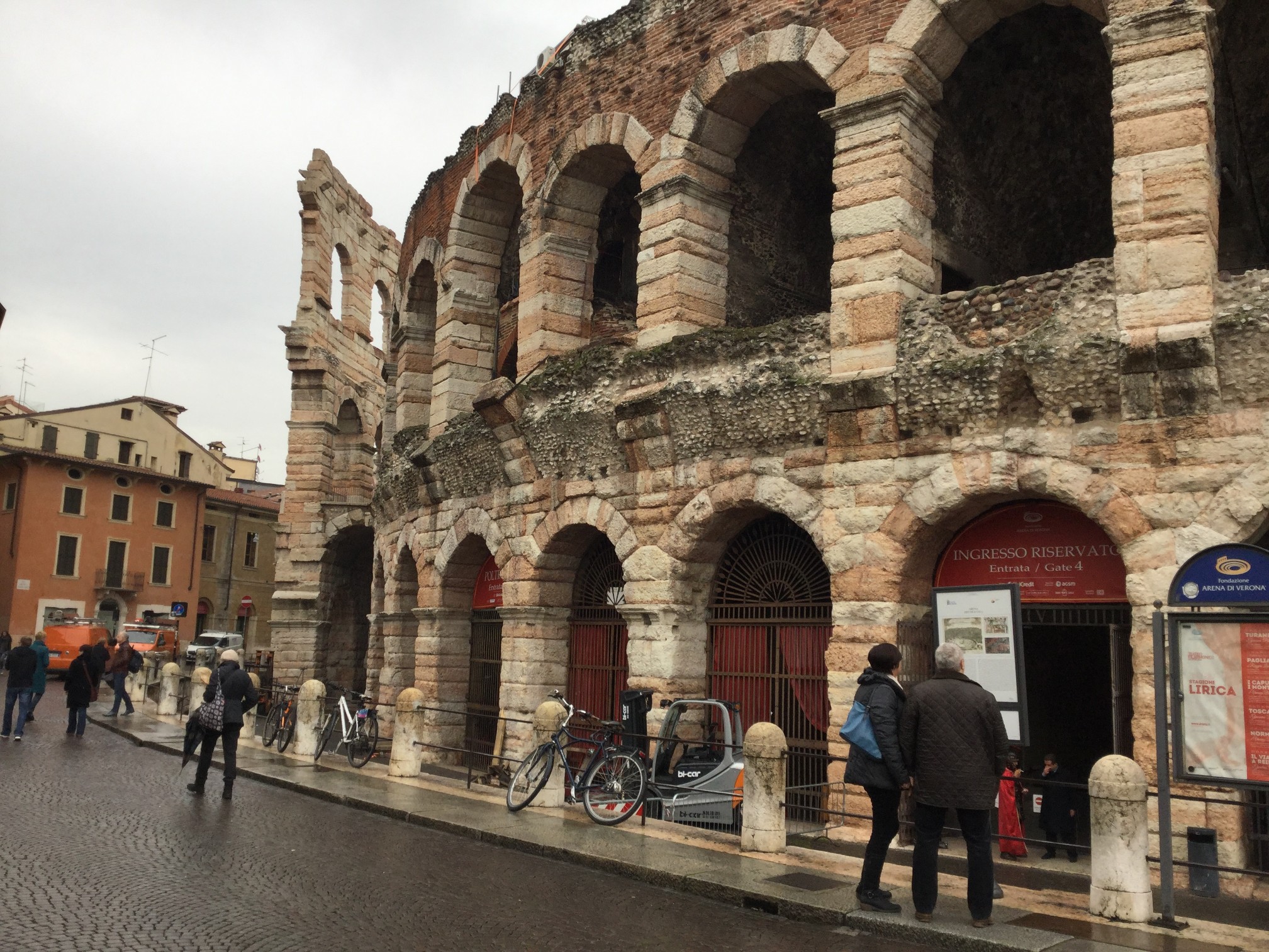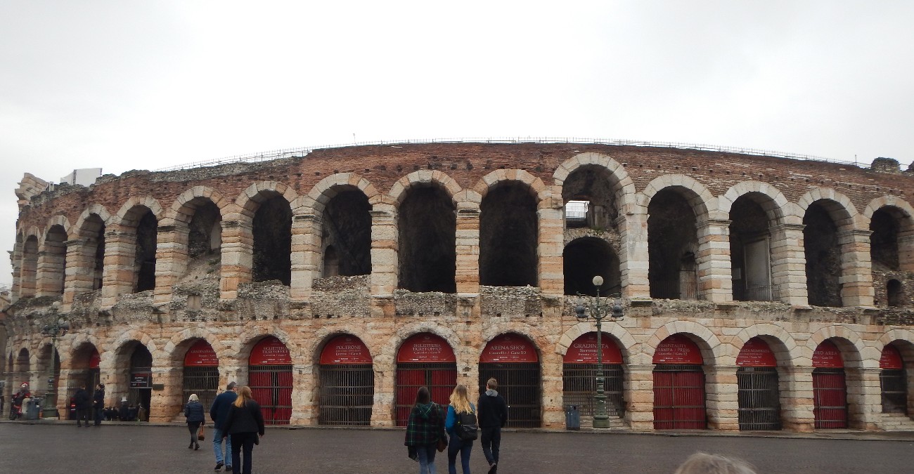 En annan byggnad som är vida känd i Verona är den stora amfiteatern, Arena di Verona. Den byggdes under det första århundradet efter Kristus. Byggnaden är 152 x 123 meter och är den största i Europa. Arenan drabbades av ett jordskalv 1177 och då blev den yttre väggen förstörd. Den används dock fortfarande och i juli – augusti varje år spelas det fantastiska operaföreställningar där. Arenan kan ta upp emot 20 000 åskådare men blir det regn blir det problem för där finns ju inget tak.