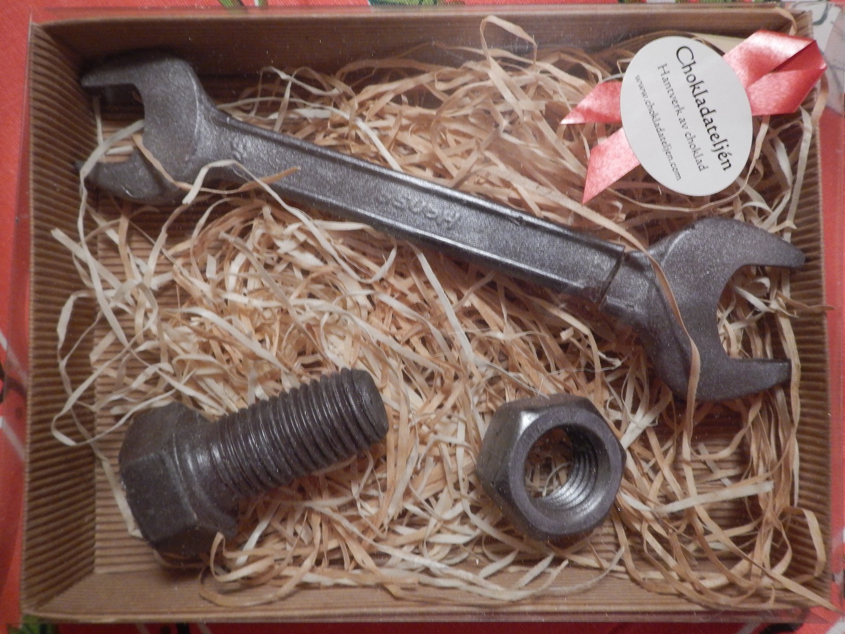Rolf som gärna håller på att fixa, dona och snickra är alltid i behov av olika instrument och just skiftnycklar och tänger har han ett speciellt förhållande till och dom till honom verkar det som. I somras när vi gick över en äng mitt ute i ingenstans snubblade han nästan på en väldigt fin och kraftig skiftnyckel. Den fick naturligtvis ett nytt hem hos oss. Därför var det lite extra roligt när han förärades en skruv, mutter och en fast tång i julklapp.