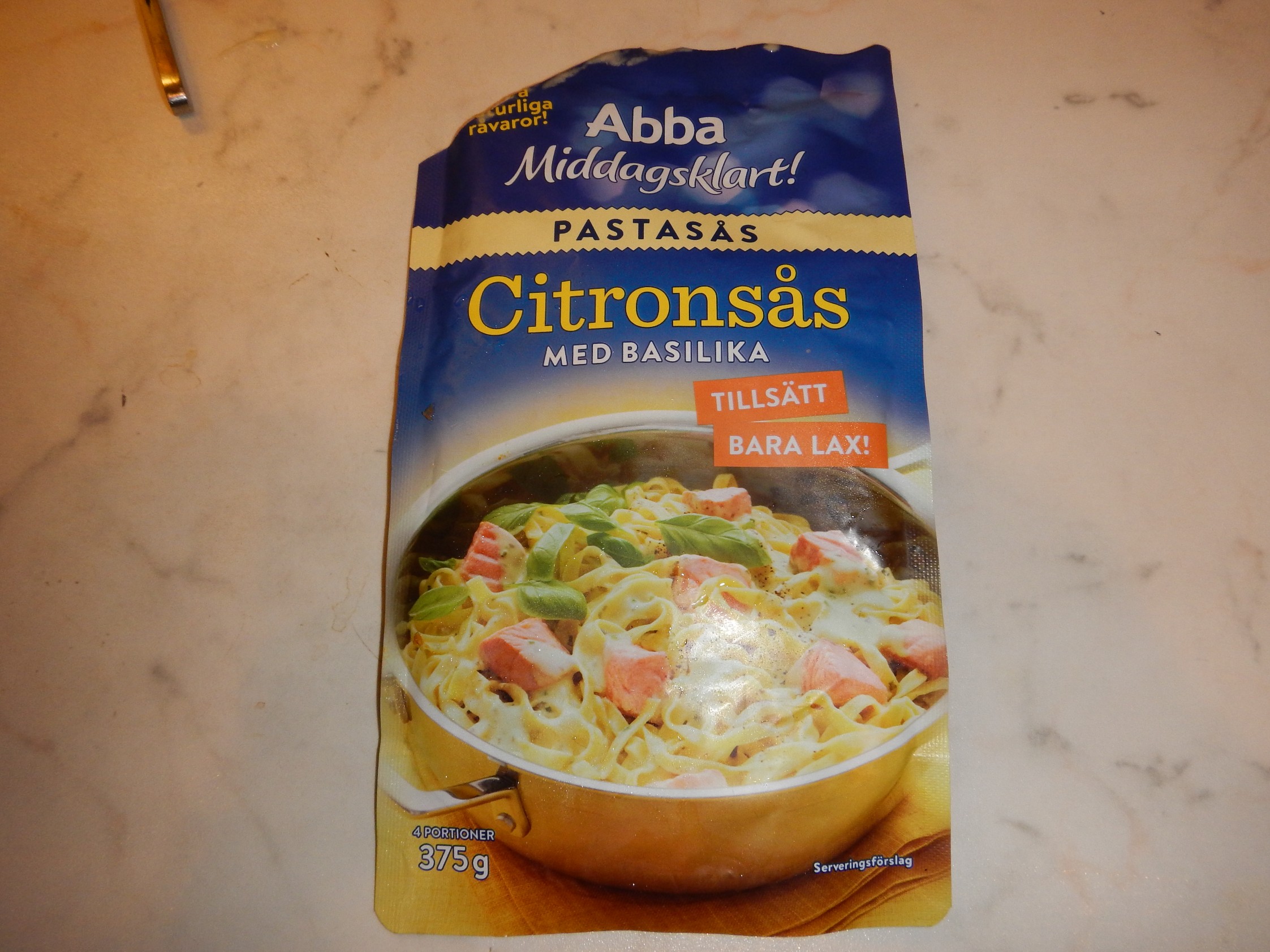 Något snopen insåg jag att det där med fisksoppa kunde jag glömma. Det fick bli en påse Abba citronsås, smörfrästa morötter, en bit torskrygg i småbitar, en halv fiskbuljongtärning. Efter att det kokat ihop hällde jag det över pastan och för att få det att se lite mer genomtänkt ut offrade jag lite Kalixrom på toppen.